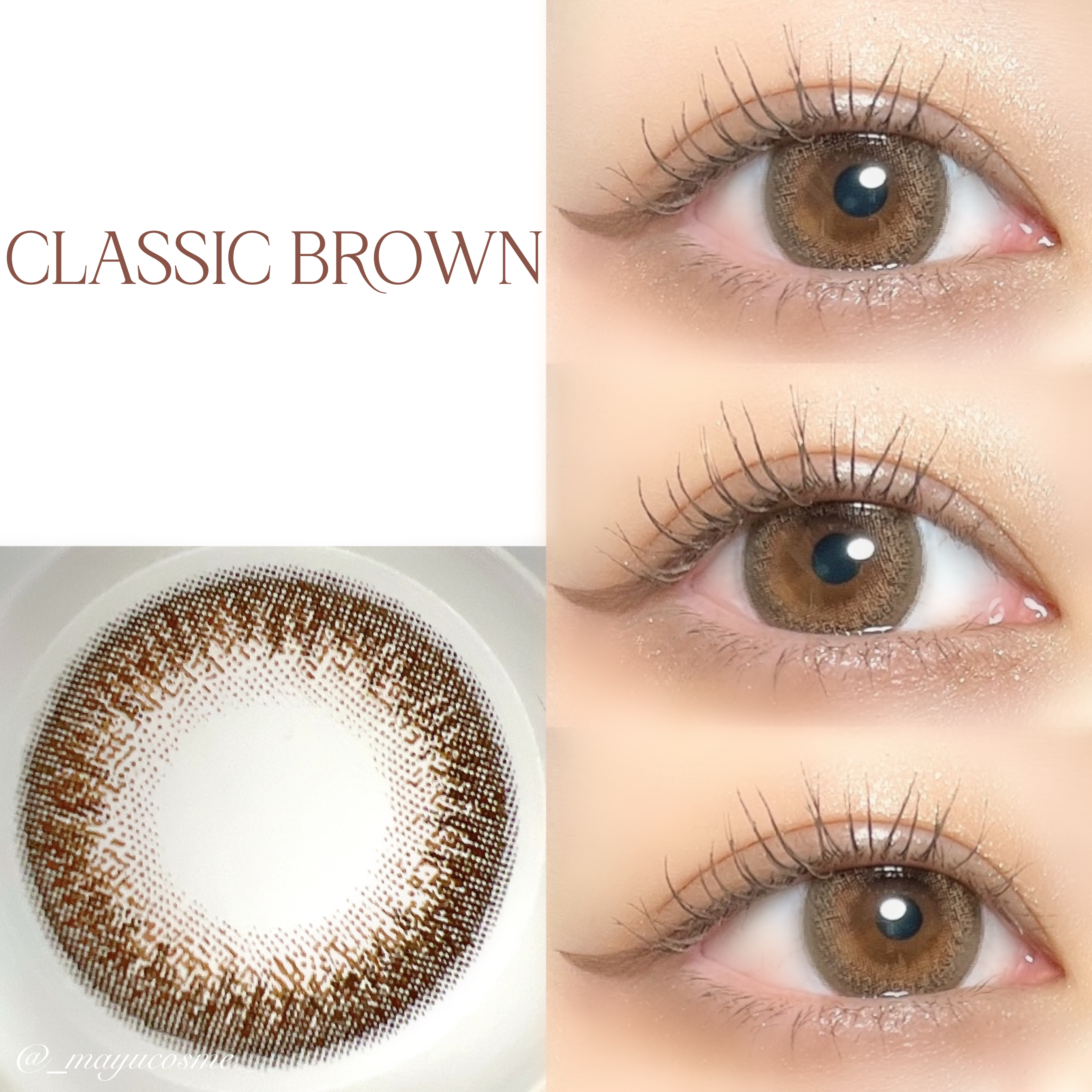 - ※2025年6月以降、商品パッケージ裏面・側面の一部表記を順次変更いたします。尚、これにかかる商品の交換・返品は承っておりません。 <クラシックブラウン> 奥行きのあるデザインとくっきりフチが程よく瞳を強調。 光沢感のあるダークカラーで重たくならず、品格のある洗練された瞳に。 <セピアムード> 細フチデザインが瞳の輪郭をさりげなく強調。 溶け込むようなベージュカラーで、上品な抜け感のある印象に。 <ムーンブラウン> ベーシックに日常生活に溶け込む色素薄い系レンズ。 ニュアンスブラウンカラーが抜け感を演出し、洗練された大人カジュアルな印象に。 <レディモーヴ> 細フチデザインが瞳の輪郭をさりげなく強調。 溶け込むようなベージュカラーで、上品な抜け感のある印象に。 カラーコンタクトレンズの不適正使用による眼障害の危険性等などがあります。 ●コンタクトレンズは高度管理医療機器です。不十分な洗浄・消毒など不適切なケアや、長時間・交換期間を超えた装用により、アレルギー性結膜炎、角膜感染症、角膜潰瘍等の重篤な眼障害が発生する危険性があります ●ご使用前に取扱説明書を確認してください 使用上の留意事項 ●眼科医院等を受診してからお求めください ●眼に異常を感じたら直ちにレンズ使用を中止し、お近くの眼科等で診察を受けてください ●医師の指示にしたがってご使用ください ●コンタクトレンズを装用する場合、自覚症状がなくても、眼科医院等での定期検査を受けてください ●レンズに不具合がある場合は使用しないでください