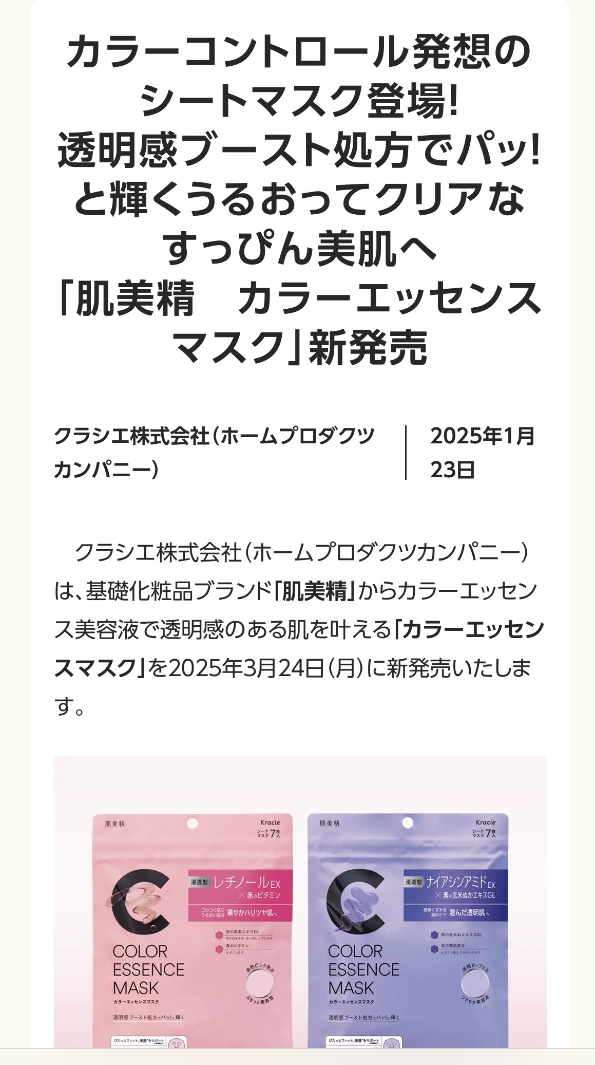 商品詳細情報肌美精 肌美精 カラーエッセンスマスク ピンク