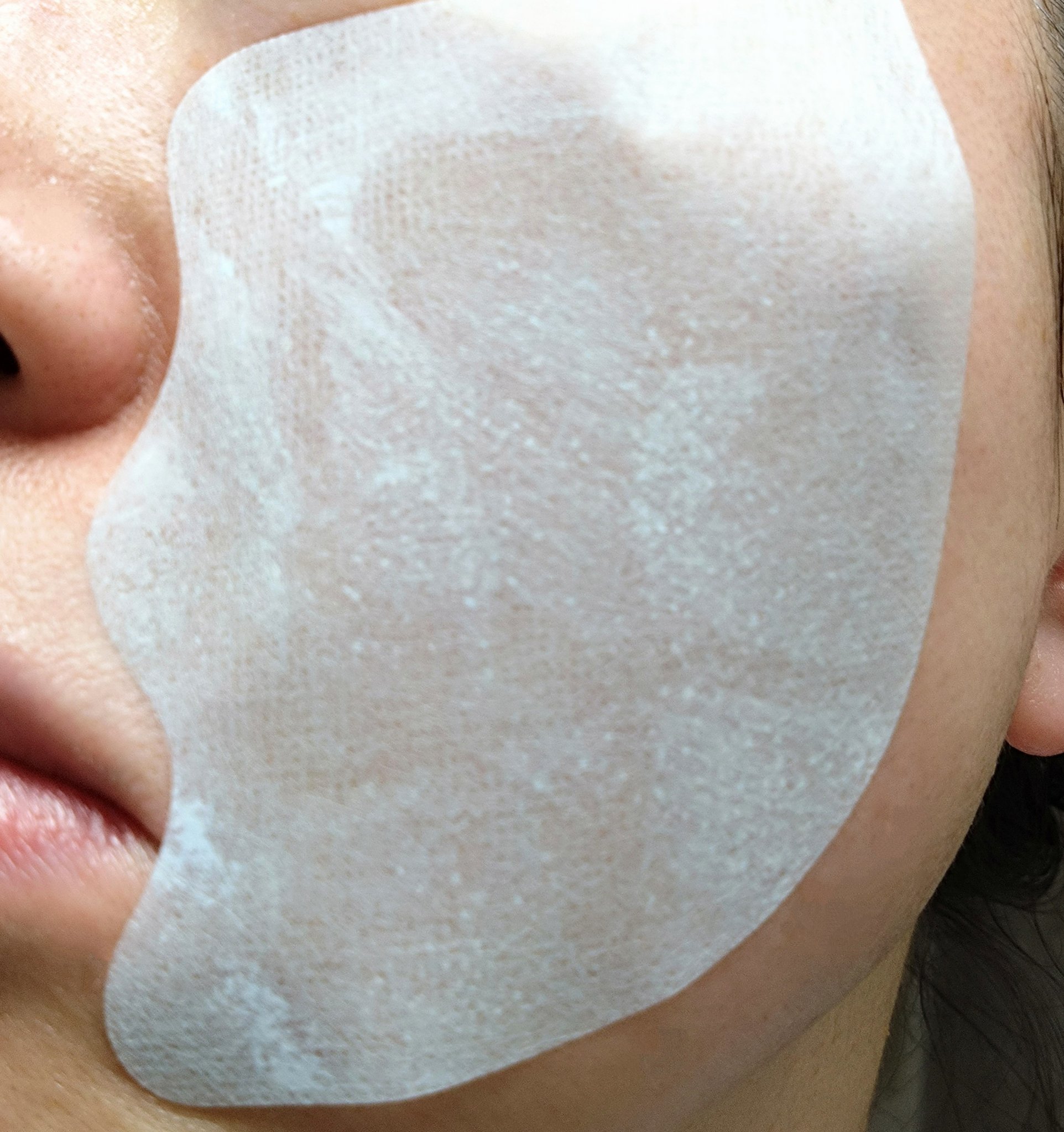フィルム自体がコラーゲンのかたまりで、ニュージーランド産のマリンコラーゲンを99.85%とヒアルロン酸0.14%でできているRTXイントゥメルティングコラーゲンフィルム✨ 髪の毛の241倍細く、毛穴の837倍小さな繊維でできたコラーゲン繊維でできているの✨😳 本当にうすーいコラーゲンのフィルムで、お肌にすぐ馴染んでた🫶💕