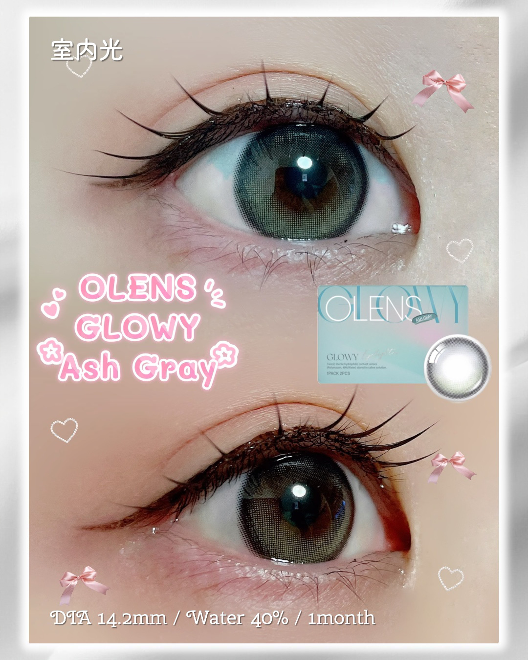 ダブルハイライターのうるちゅるグレーカラコン🖤⑅⃛┈┈┈┈┈┈┈┈┈┈┈┈┈┈┈◎#OLENS#DoubleTint1day(1箱10枚入り) 1760円ダブルハイライターだから、どんな角度でもちゅるん感ばっちり◎裸眼に馴染むグレーの細フチ...