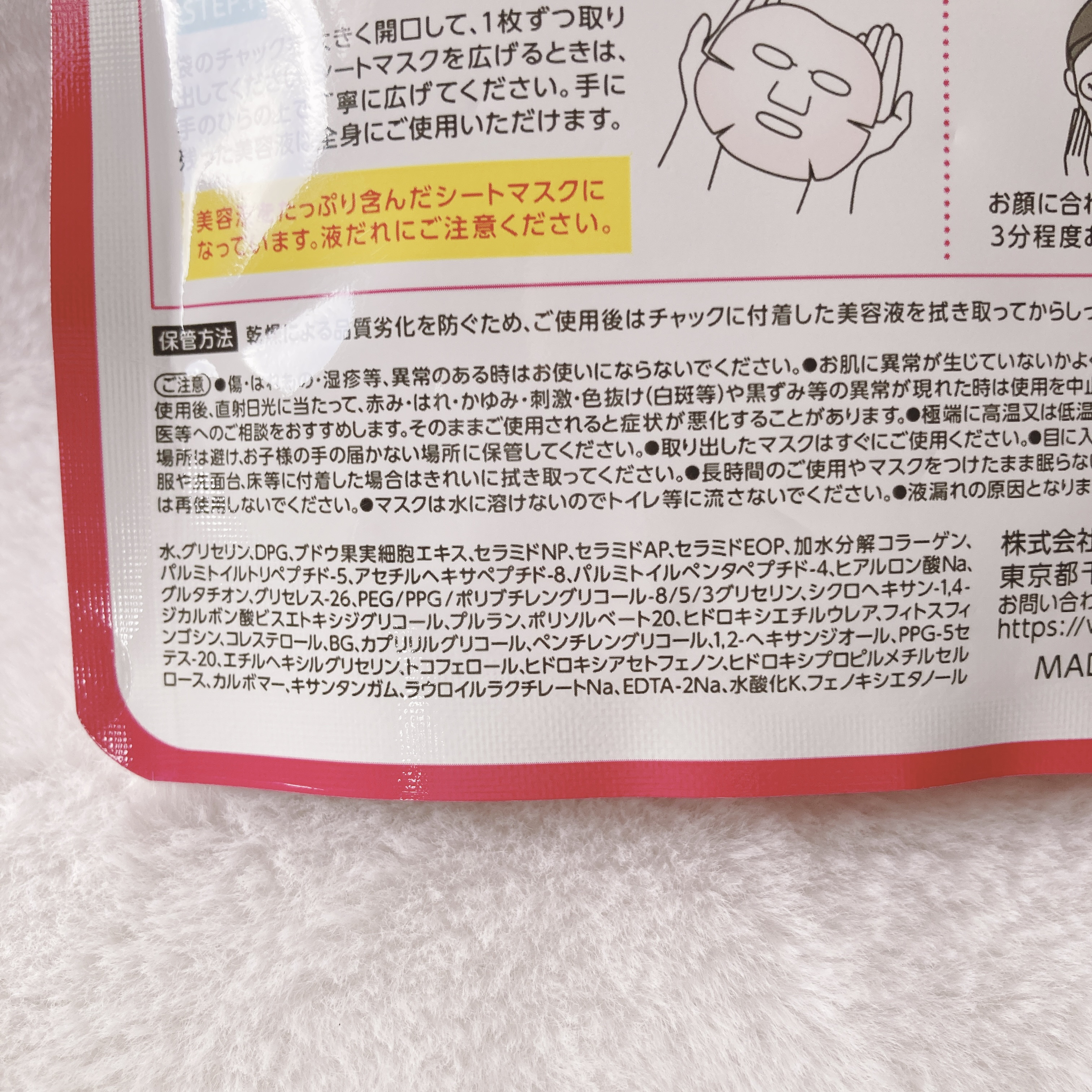 - çã·ãã£è³ªæã®é«ä¿æ¹¿ã·ãŒããã¹ã¯ã ããããç¶ããçã·ãã£ãé«å¯çã·ãŒããçŸå®¹æ¶²ããã£ã·ãå«ãã ã·ãã·ããªã·ãŒãã¯ãŸãã§è²ŒãçŸå®¹æ¶²ïŒïŒä¹Ÿç¥ãã«ãããã¯ããã«ããã 3çš®ã®ããåã»ã©ããâ»1ãšïŒçš®ã®çŸå®¹ä¿æ¹¿æåïŒæ€ç©ç±æ¥ãšã¯ãœãœãŒã â»2ãå æ°Žåè§£ã³ã©ãŒã²ã³ãããããâ»3ããã¢ã«ãã³é žNaãã°ã«ã¿ããªã³ïŒé åã â»1 ã»ã©ããAPãã»ã©ããNPãã»ã©ããEOP(çŸå®¹ä¿æ¹¿æå) â»2 ãããŠæå®çްèãšãã¹ â»3 ãã«ããã€ã«ããªãããã-5ãã¢ã»ãã«ãããµãããã-8ããã«ããã€ã«ãã³ã¿ãããã-4 ç®å°»ãç®ã®äžã®ãã¯ãŸã§å¯çããå°éŒ»ããã£ããã«ããŒãããã¿ããšã¹ããªã圢ç¶ã äœ¿çšæ¹æ³ è¢ã®ãã£ãã¯ã倧ããéå£ããŠã1æãã€åãåºããŠãã ãããã·ãŒããã¹ã¯ãåºãããšãã¯ãæã®ã²ãã®äžã§äžå¯§ã«åºããŠãã ãããæã«æ®ã£ãçŸå®¹æ¶²ã¯å šèº«ã«ã䜿çšããã ããŸãããé¡ã«åãããŠå¯çããã3åçšåºŠãããŠãã ããããã¹ã¯ãå€ãããèã«æ®ã£ãçŸå®¹æ¶²ããªããŸããŠãã ããã â»çŸå®¹æ¶²ããã£ã·ãå«ãã ã·ãŒããã¹ã¯ã«ãªã£ãŠããŸããæ¶²ã ãã«ã泚æãã ããã