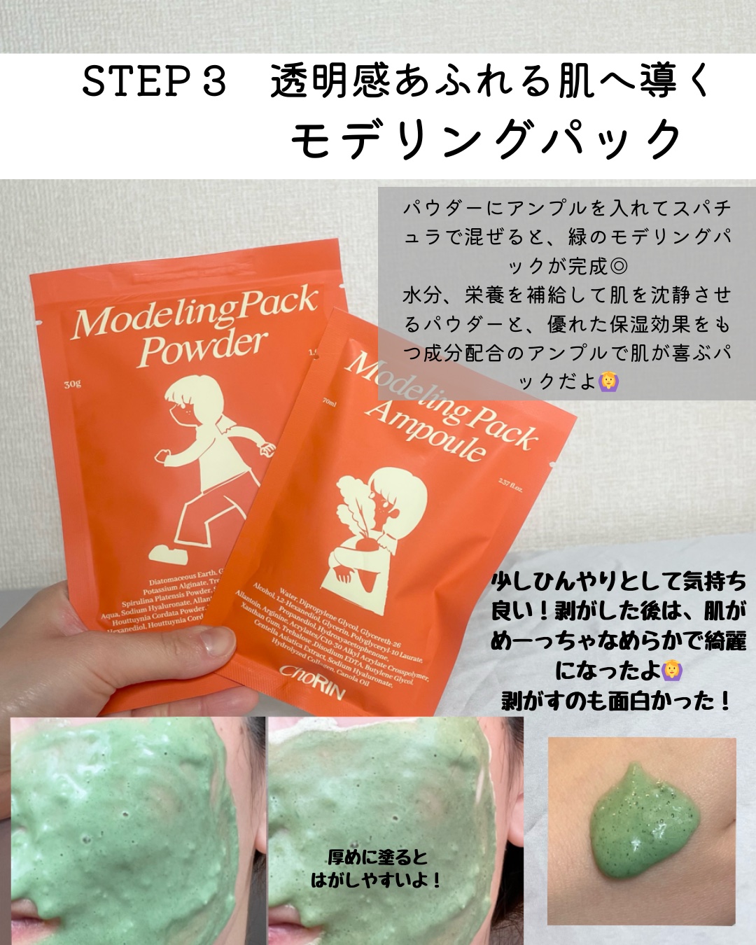 choRINさまからいただきました♡\\自宅で簡単スペシャルホームケア//ピーリング、パック、モデリングマスクの3ステップでお肌に水分・栄養補給⟡.*1箱に全てのセットが入ってるよ‼️まずはピーリング!洗顔後の乾いた肌に。クルクルするとポロポ...