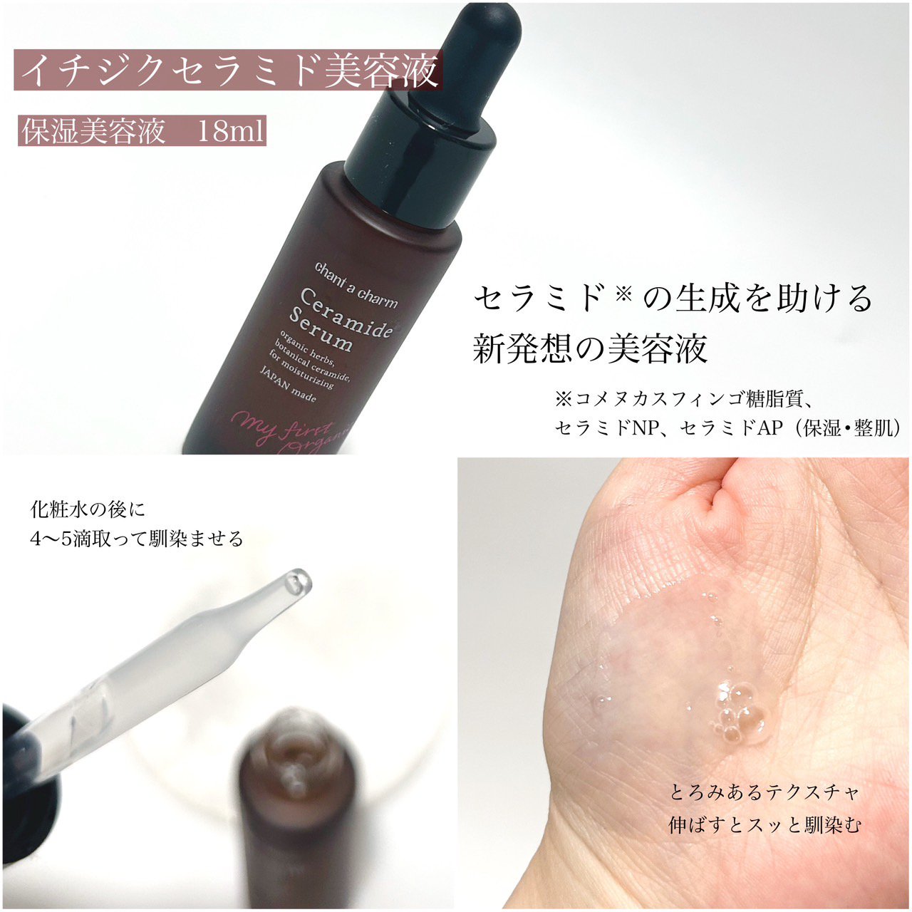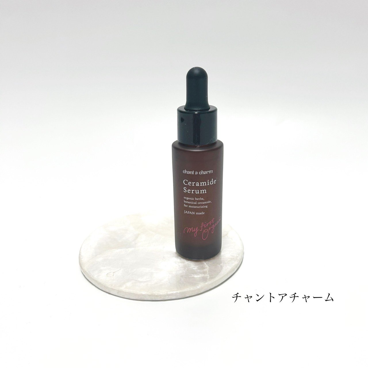 少量でも もっちり♡ お肌の土台を整える*保湿美容液 チャントアチャームのイチジクセラミド美容液🕊️ 精油のナチュラルか香りがして好きな感じの使用感。グレープフルーツ、スパイクラベンダーのさわやかな甘さと深みのある甘さが心地よくリフレッシュできるようなやさしいハーブの香り🌿 イチジク*3とセラミド*2の力でゆらぎやすい肌の土台*を立て直す!