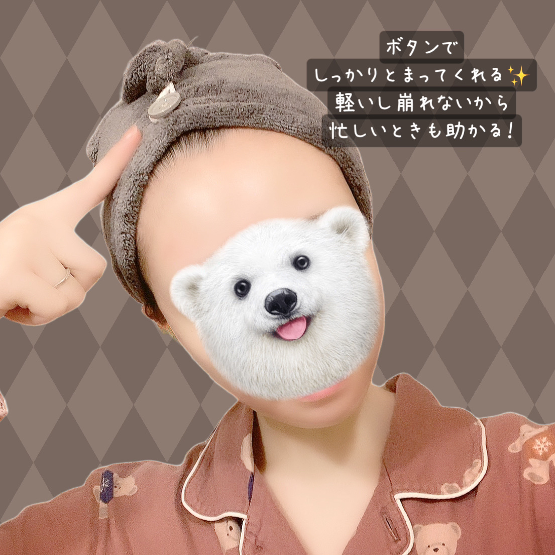 ドライヘアキャップ2枚セットをお試しさせていただきました。やわらかくてふわふわなマシュマロタッチのヘアキャップ。ボタン&フック付きで、簡単にターバンに出来て、フィットしてくれるので、崩れにくくて便利です。吸水性にも優れているそうで、嬉しい!フ...
