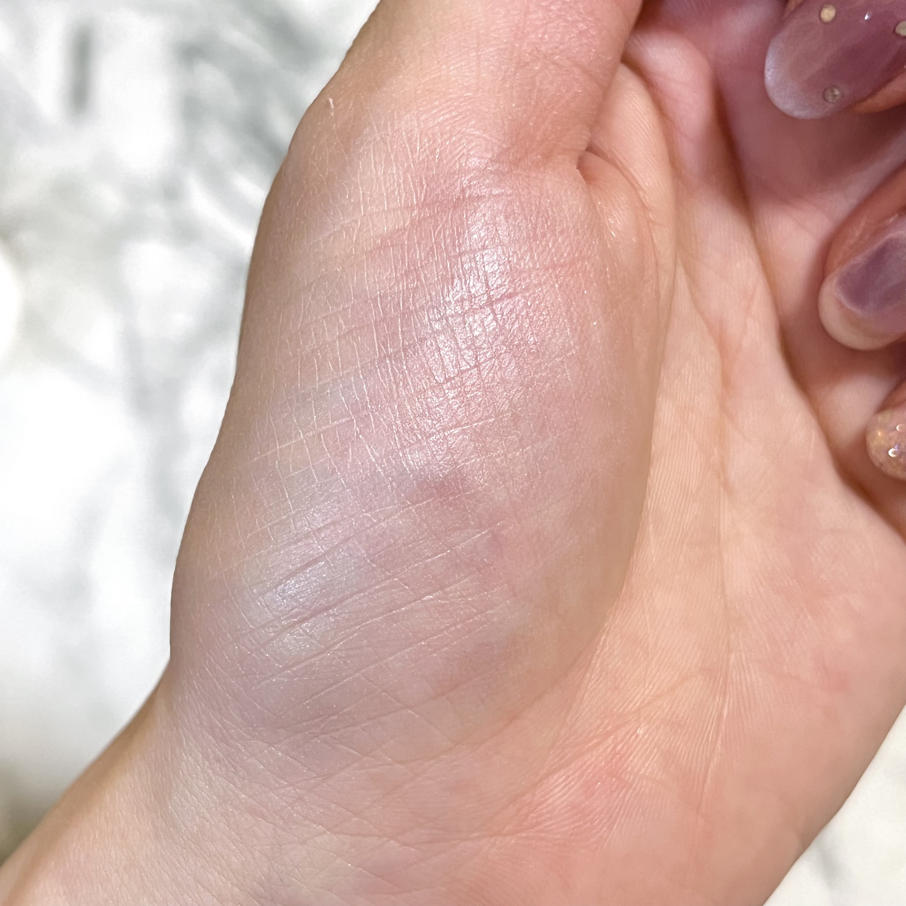 これは一体何色なんだ…?と悩むような不思議な色味 ベージュ、グレー、パープルが絶妙にブレンドされた 霞がかったような、なかなか他にはないカラーです😌 肌に乗せてみると、不思議とびっくりするくらいの透明感が🥰 くるくると磨くように塗ると、不思議と上品なツヤ感のある仕上がりになりました😍 サラッと付けるともう少しマットな感じになります 手持ちのチークのニュアンスチェンジにも使えるのがポイントです✨ ↑にもちょこっと書きましたが、このLakaのチークは粉質がものすごく良くて✨ パサパサ感皆無、粉飛び無しの超しっとりしたパウダーで これが2000円以下、というのはちょっと信じられないなと思うくらいです😌