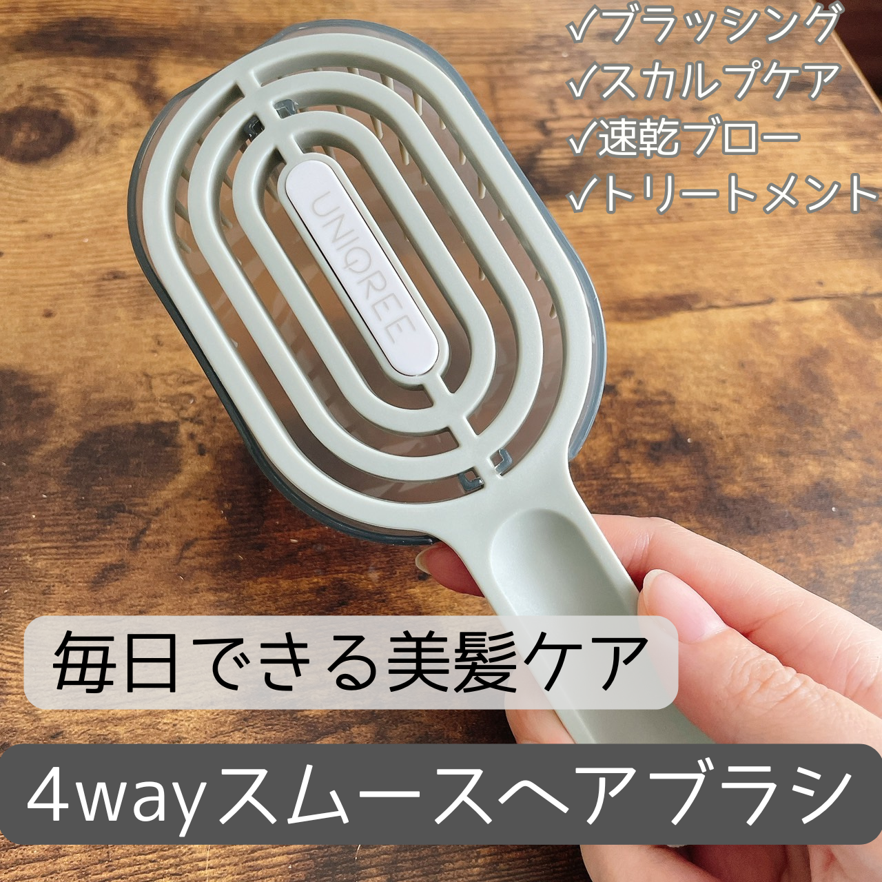 🖤お風呂前に使うブラシと浴室で使うもの、ブローで使うものと何本も使い分けてたからこれは持ち運びにも便利なヘアブラシ❤️🔥■4wayスムースヘアブラシ長さの異なる3本の特徴的な円錐形のピン🪮短い毛~長い毛までしっかりキャッチタテ・ヨコ・ナナメ...