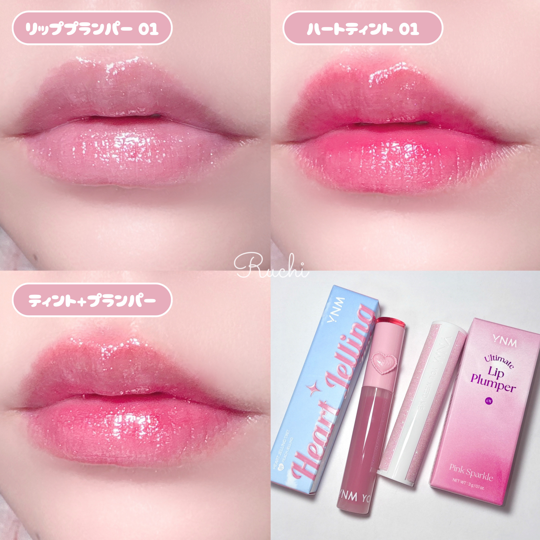 パケが可愛すぎる💞YNMのティント&プランパーご紹介🫧✧YNMハートゼリングティント01ピーチゼリー02さくらんぼゼリー06すももゼリーちゅるんとしたツヤ感が綺麗なティント✨シリコンブラシを内蔵!!色持ちもいいです🫶🏻アルティメットリッププラ...