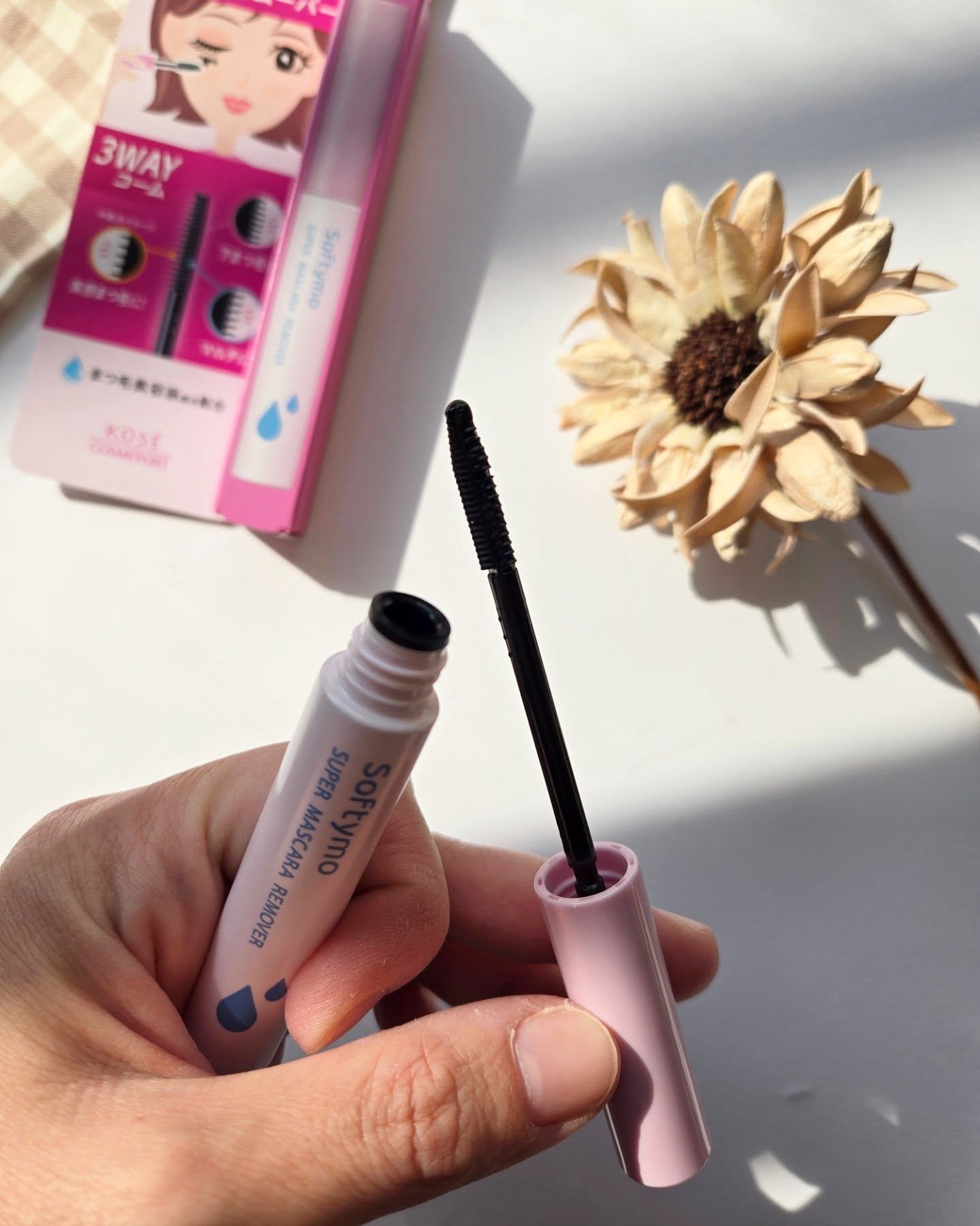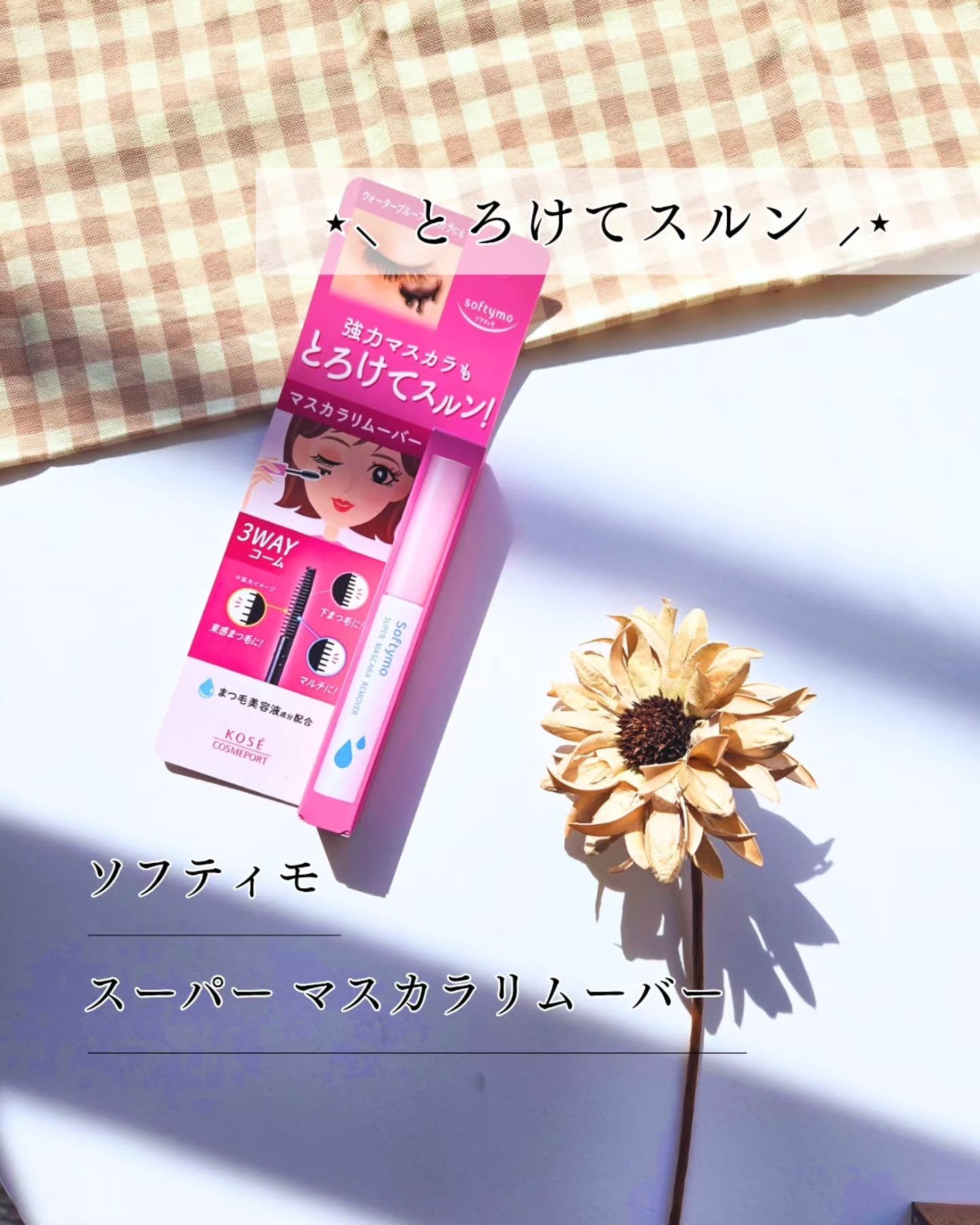 #PR#ソフティモ\強力マスカラもとろけてスルン!/ソフティモスーパーマスカラリムーバー重ね塗りしたウォータープルーフマスカラもこすらずスルン✨どんなまつ毛にもフィットする3WAYコームがとっても塗りやすい👍✨塗った後コットンでオフしてるよ✯...