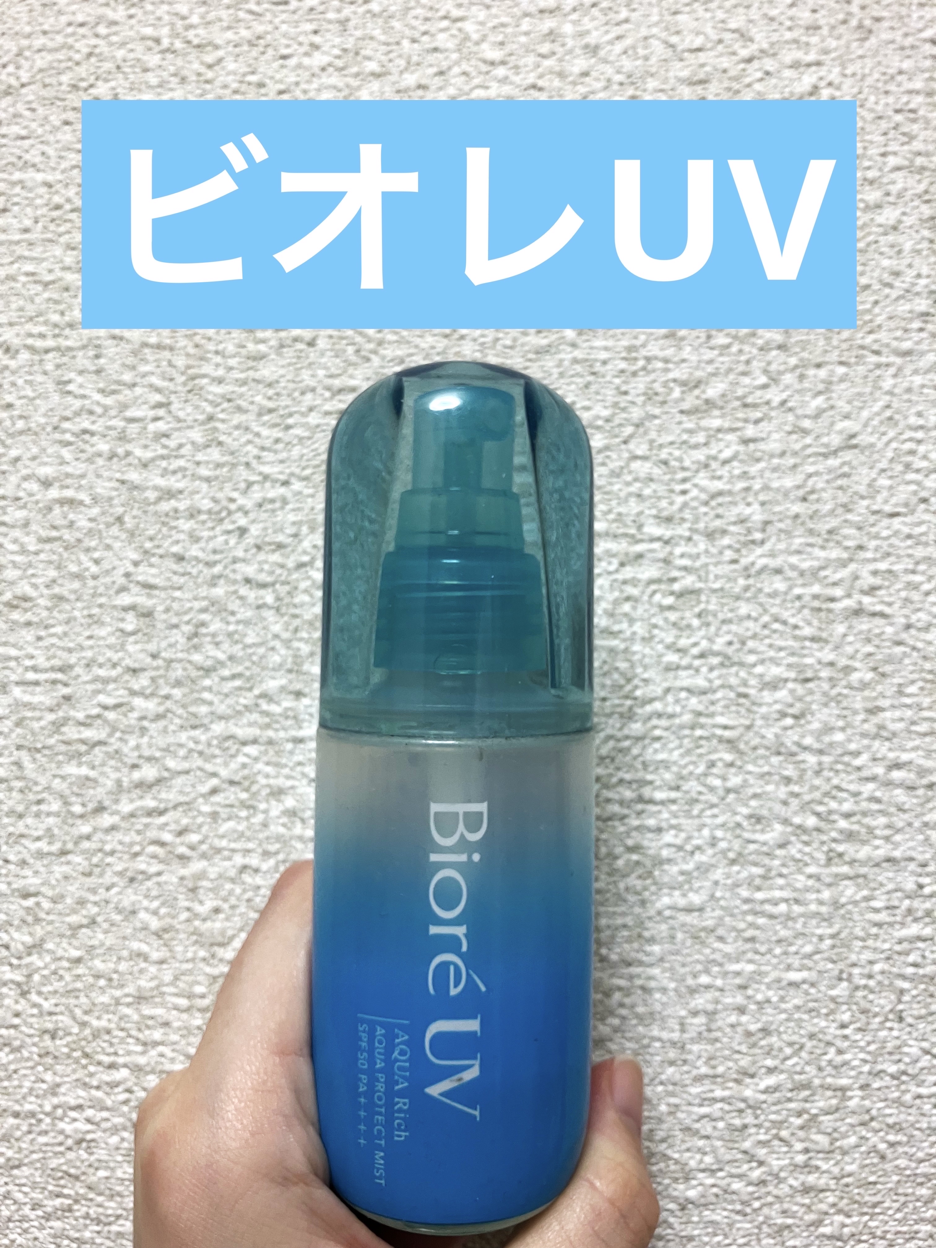 ビオレUVアクアリッチアクアプロテクトミストミストタイプの日焼け止め☀️髪にも使えるし、首や膝裏など塗りにくいところにも使いやすいです♪外出先での塗り直しにも便利!ガスタイプのスプレー缶だと、夏場に暑い中持ち歩くのも怖いし、公共のお手洗いで使...