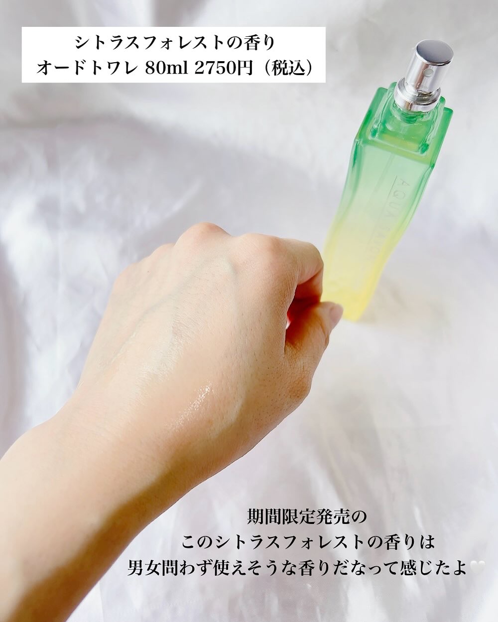 アクアシャボン新作❤️AQUASAVONオードトワレシトラスフォレストの香り80ml2750円(税込)オードパルファムシトラスフォレストの香り16ml1650円(税込)限定発売の"シトラスフォレスト"シトラスとシャボンの爽やかな香りに少し優し...
