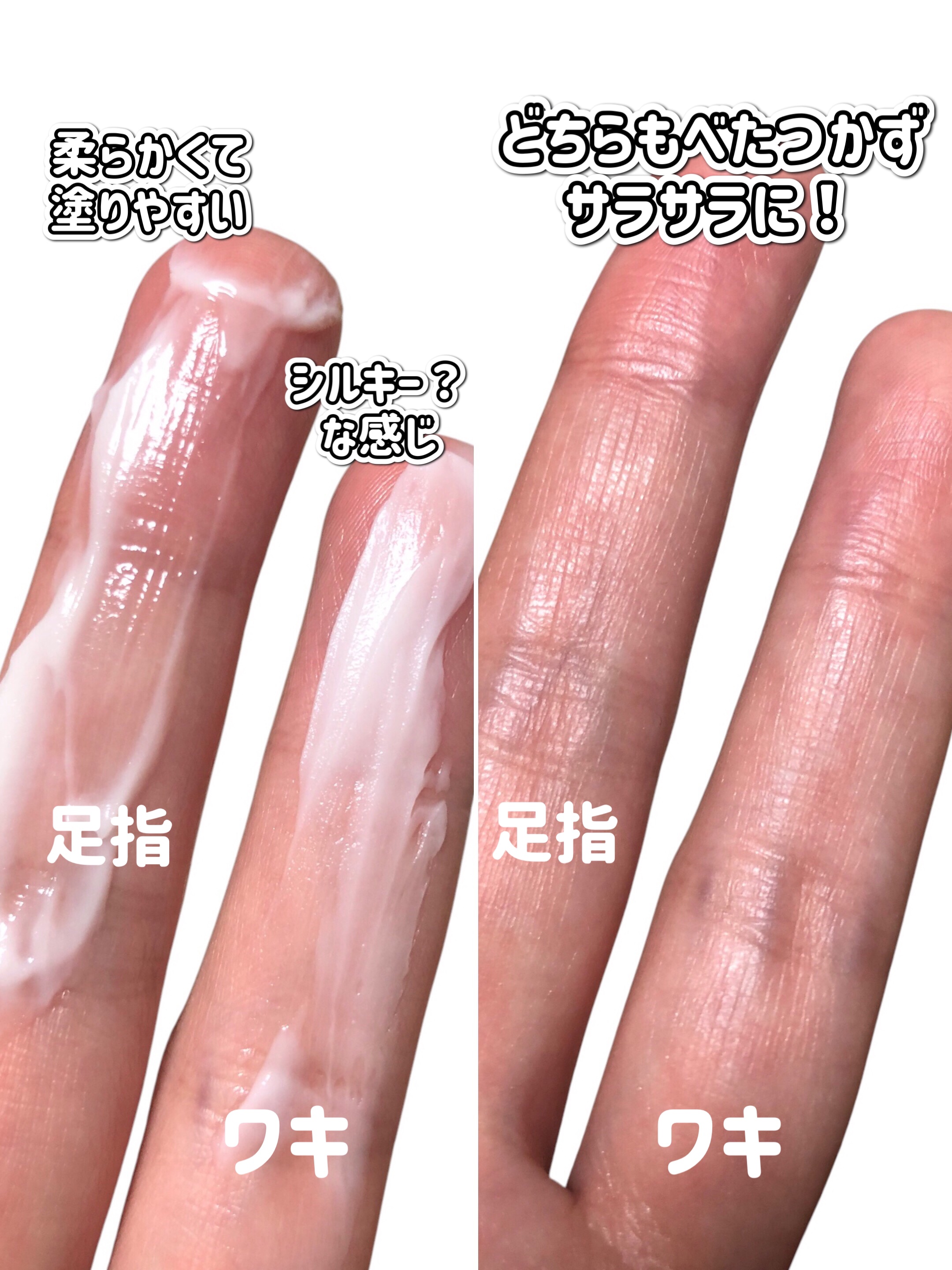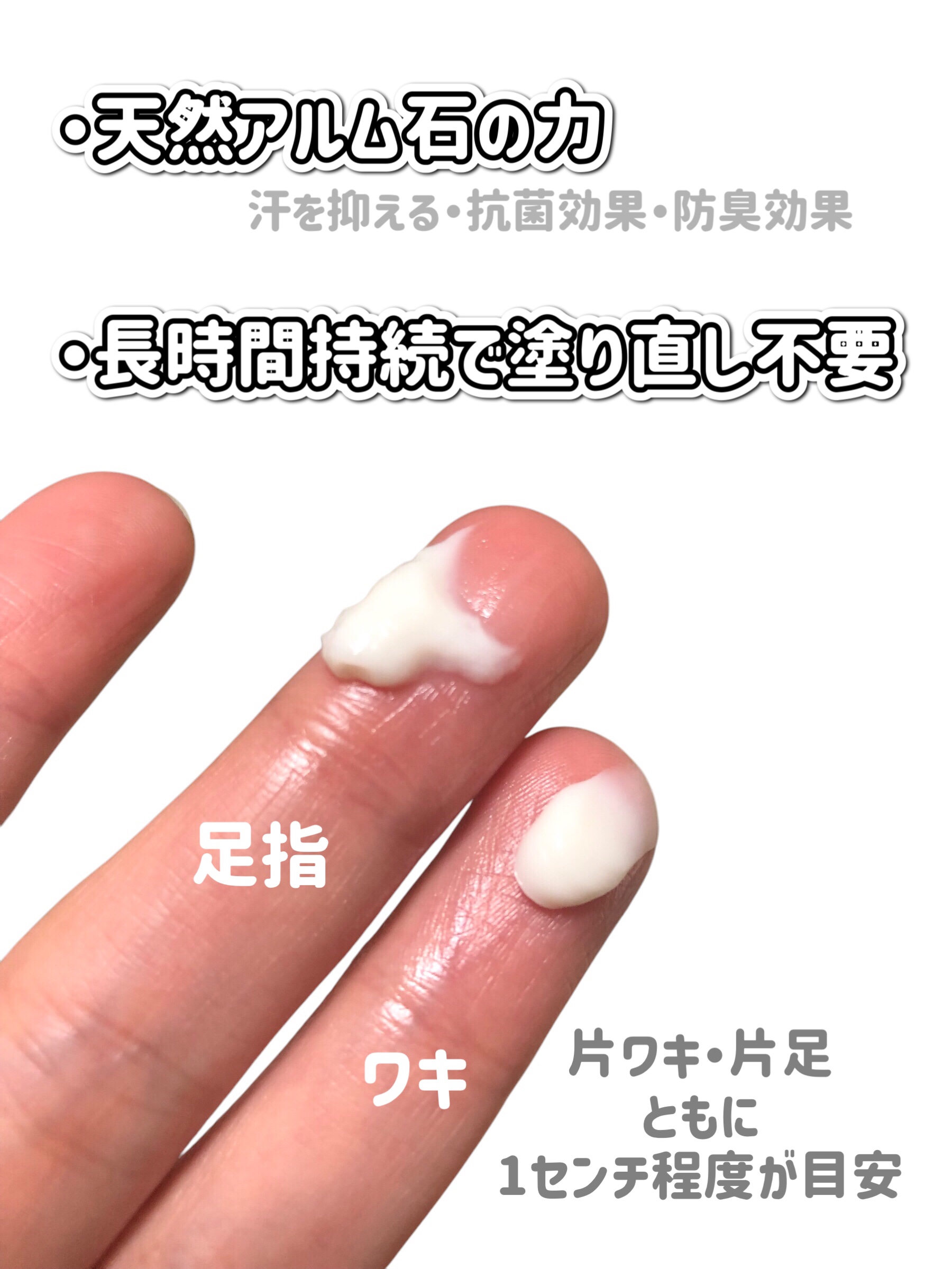 薬用足指さらさらクリームはちょい固めのクリームテクスチャー♡ 汗吸収さらさらパウダー*配合でクリームなのにベタつかず、さらさら仕上がりに♡♡ 焼きミョウバンには汗を抑える効果、抗菌効果、防臭効果があってこれ一つで汗ケアがばっちりできちゃう🫶 この2つがあれば夏の汗ケアはばっちりだしもう汗が怖いってこともなくてうれしい🍀*゜