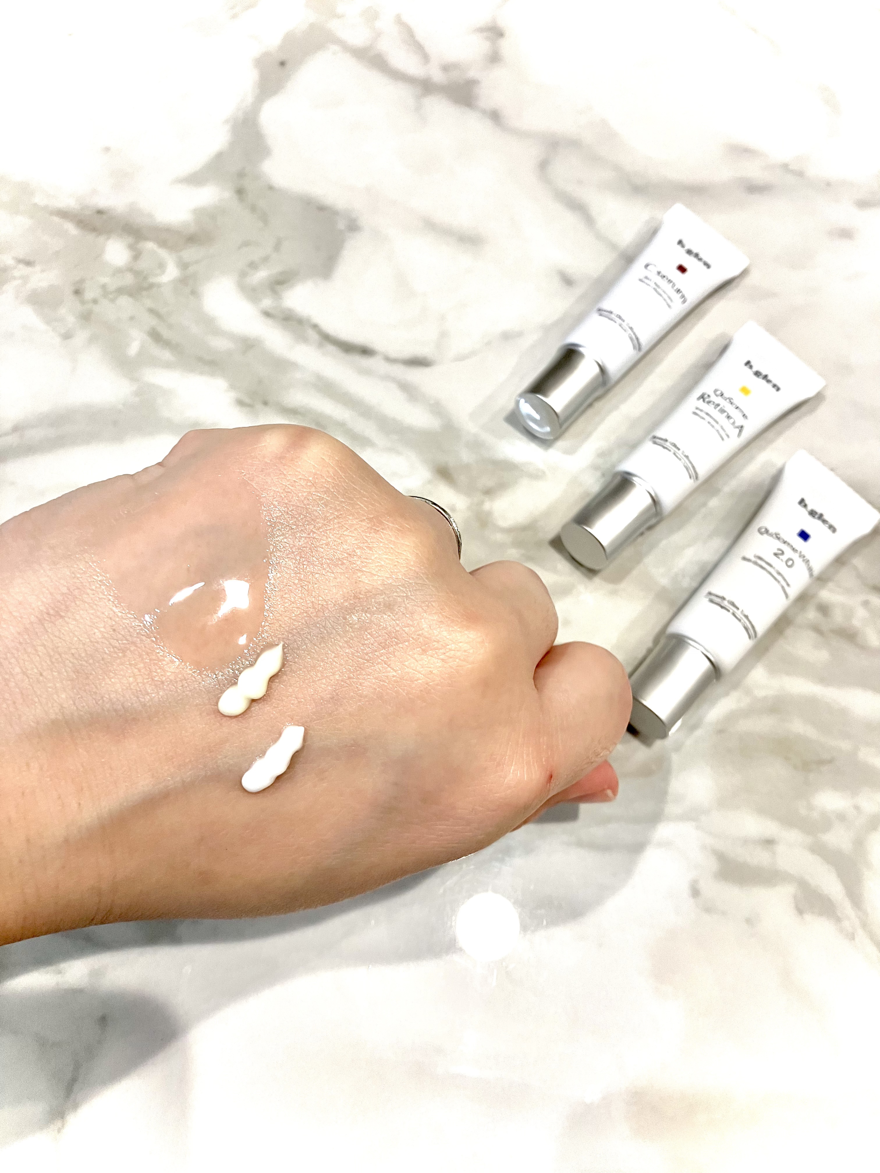 - 紫外線ダメージ*1に負けない透明感のある明るい肌印象へ導く「ホワイトケア*2」。お手入れの鍵を握るのは、美容の専門家によるお手入れ*3を再現した「ビタミンC*4」「レチノール*4」「ハイドロキノン*4」のトリプル処方です。夜は6ステップ、朝は5ステップで一点の曇りも残さない透き通るような素肌を目指します。 *1 乾燥のこと *2 QuSomeホワイト2.0によるケア *3 the salon by b.glen でのお手入れ *4 整肌成分 クレイウォッシュ (25g)/QuSomeローション (12mL)/Cセラム (5mL)/QuSomeレチノA (5g)/QuSomeホワイト2.0 (5g)/QuSomeモイスチャーリッチクリーム (7g)
