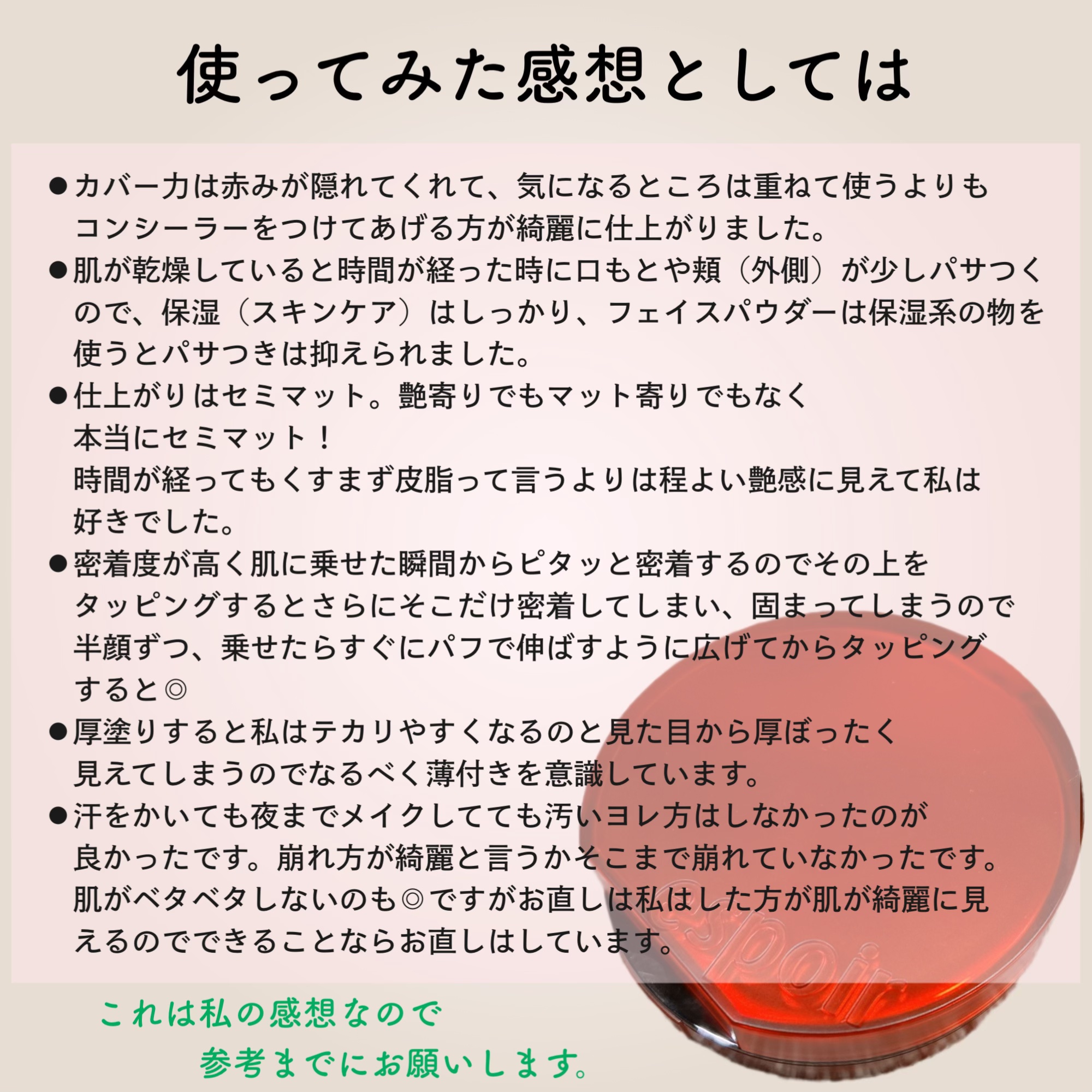 | ファンデーションランキング第13位 | 塗り心地といい、セミツヤ感 マスクしてても崩れがほぼ気にならない!! | 詳細を見る | |