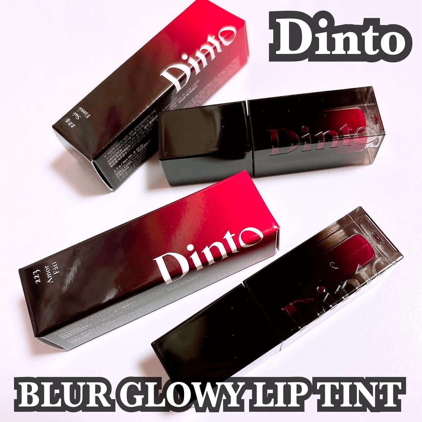 Dintoのティントリップは色残り◎ ベタつかずぷるつるな仕上がり 初めて使ったけどすごく可愛い♥️ིྀ 222は肌なじみの良い青みレッド 223は肌なじみの良いローズレッドという印象でした⋆* 美味しそうなフルーツの香り付きパケが格好良くて好きです🖤