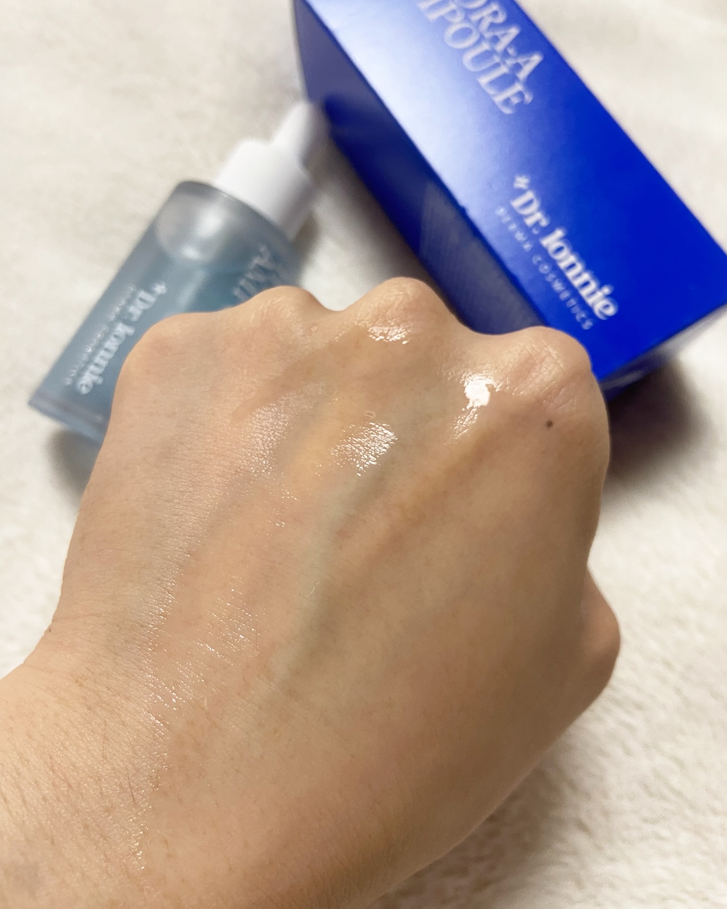 乾燥によるカサつき、くすみ、シワなどにアプローチしてくれるドクターロニーのハイドラAアンプル。 高分子・中分子・低分子と大きさの違うヒアルロン酸を組み合わせた複合ヒアルロン酸、ナイアシンアミド、グルタチオン、ニコチノイルジペプチド-23、アデノシンなどを配合。 こちらは水のようにサラッとしたテクスチャーでスッと肌になじみます!