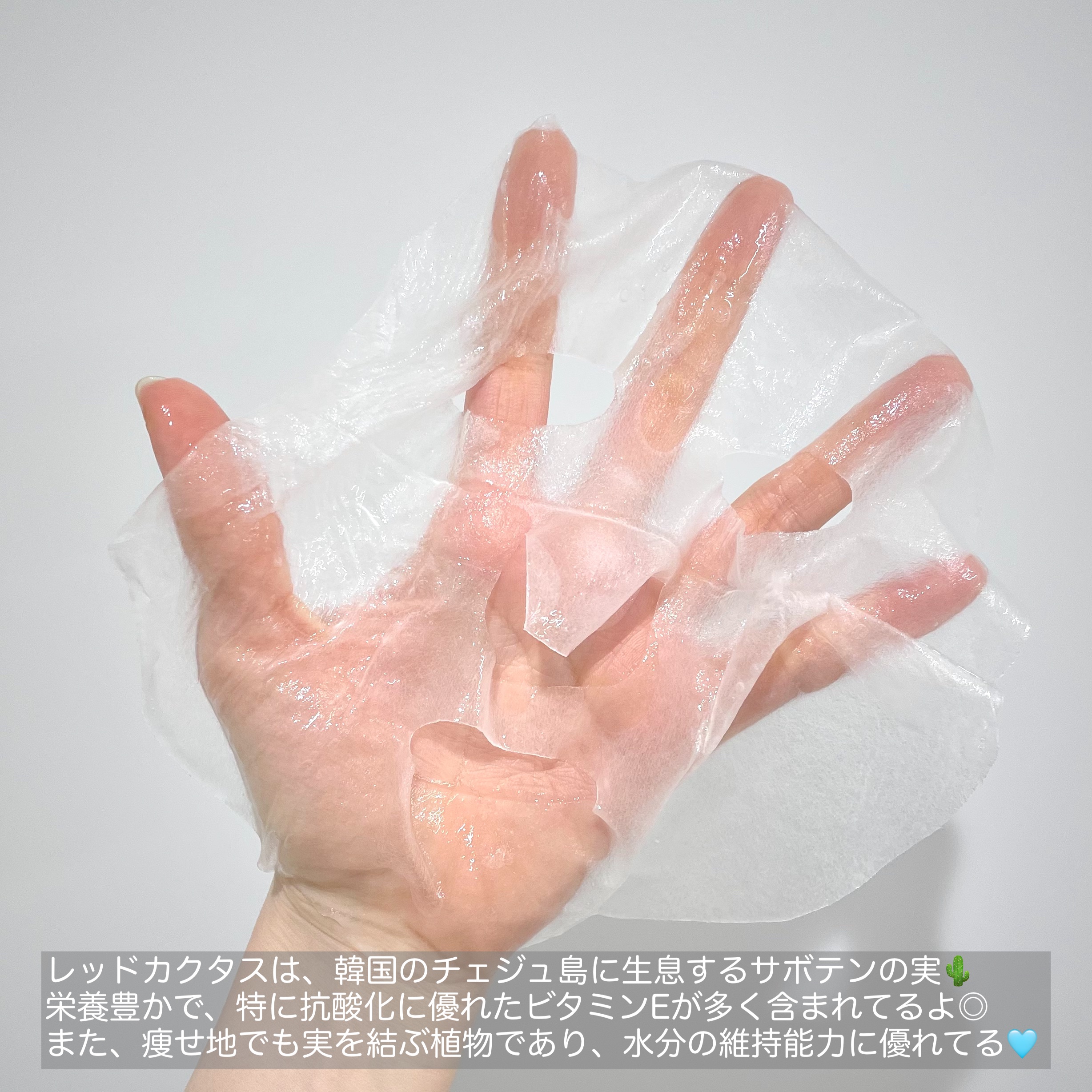 刺激のないふっくらとした生地に べたつかないうるおいエッセンスがたっぷり含まれ 保湿・鎮静・バリア・クーリング効果を 1枚で果てしてくれるよ👌💕 2枚にさけて使うことができるから 潤いたっぷりのパックができてお気に入り˘⌣˘♡