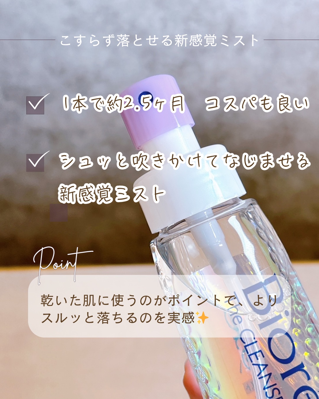 \浴びるだけ⁈/酷評ごめん🙏🏻噂のオイルミスト正直レビュー🫥▶︎ビオレザクレンズオイルミストメイク落とし本体120ml¥1,595浴びるだけ、メイク瞬浮き!オイルがメイク膜を壊して浸透。毛穴に入った化粧下地ウォータープルーフマスカラまでしっか...