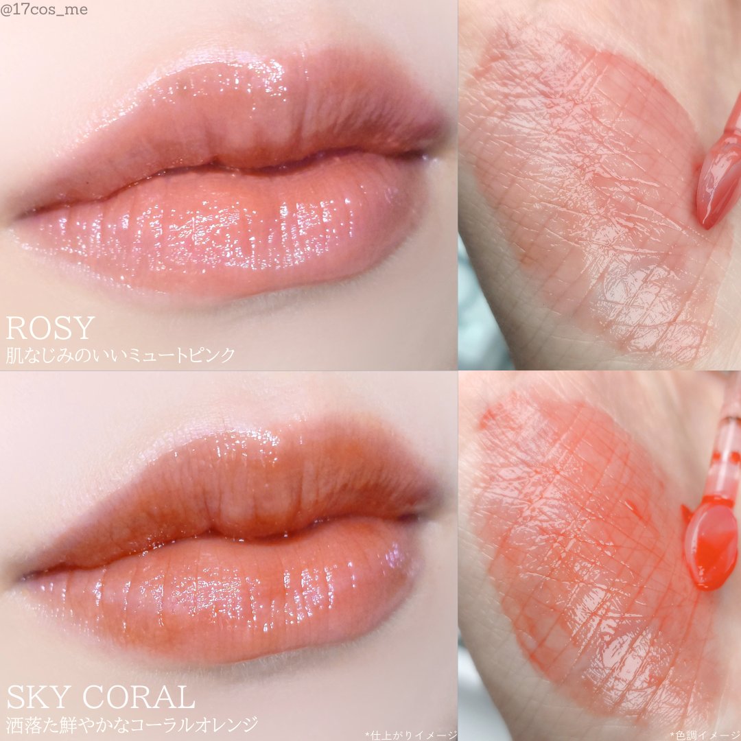 - <ロージー> 水添ポリ(C6-14オレフィン)、水添ポリイソブテン、トリ(カプリル酸/カプリン酸)グリセリル、(エチレン/プロピレン/スチレン)コポリマー、酢酸トコフェロール、ダイズ油、パルマローザ油、ニオイテンジクアオイ花油、ヒマシ油、ホホバ種子油、ローズマリー葉油、ダマスクバラ花油、オレンジ果皮エキス、テトラヘキシルデカン酸アスコルビル、レチノール、セラミドNP、ダイズポリペプチド、乳酸桿菌培養溶解質、加水分解エクステンシン、ヒアルロン酸Na、加水分解ヒアルロン酸、ヒアルロン酸クロスポリマーNa、ヒアルロン酸、アセチルヒアルロン酸Na、エチルヘキシルグリセリン、トリイソステアリン酸ポリグリセリル-2、ラウリン酸ポリグリセリル-10、(ブチレン/エチレン/スチレン)コポリマー、テトラ(ジ-t-ブチルヒドロキシヒドロケイヒ酸)ペンタエリスリチル、水、水酸化Al、トリエトキシカプリリルシラン、グリセリン、プロパンジオール、BG、1,2-ヘキサンジオール、水添レシチン、トコフェロール、メントキシプロパンジオール、マンダリンオレンジ果皮油、ベルガモット果実油、パチョリ油、カミツレ花油、ラベンダー油、酸化チタン、酸化鉄、赤201、赤202 <ベア> 水添ポリ(C6-14オレフィン)、水添ポリイソブテン、トリ(カプリル酸/カプリン酸)グリセリル、(エチレン/プロピレン/スチレン)コポリマー、酢酸トコフェロール、ヒマワリ種子油、ダイズ油、パルマローザ油、ニオイテンジクアオイ花油、ヒマシ油、ローズマリー葉油、ホホバ種子油、ダマスクバラ花油、ニンジン根エキス、オレンジ果皮エキス、レチノール、β-カロチン、セラミドNP、ダイズポリペプチド、乳酸桿菌培養溶解質、ヒアルロン酸Na、加水分解エクステンシン、ラウリン酸ポリグリセリル-10、ヒアルロン酸クロスポリマーNa、加水分解ヒアルロン酸、ヒアルロン酸、アセチルヒアルロン酸Na、テトラヘキシルデカン酸アスコルビル、エチルヘキシルグリセリン、(ブチレン/エチレン/スチレン)コポリマー、グリセリン、BG、水、プロパンジオール、1,2-ヘキサンジオール、トコフェロール、テトラ(ジ-t-ブチルヒドロキシヒドロケイヒ酸)ペンタエリスリチル、水添レシチン、メントキシプロパンジオール、マンダリンオレンジ果皮油、ベルガモット果実油、パチョリ油、カミツレ花油、ラベンダー油 <スカイコーラル> 水添ポリ(C6-14オレフィン)、水添ポリイソブテン、トリ(カプリル酸/カプリン酸)グリセリル、(エチレン/プロピレン/スチレン)コポリマー、酢酸トコフェロール、ダイズ油、パルマローザ油、ニオイテンジクアオイ花油、ヒマシ油、ホホバ種子油、ローズマリー葉油、ダマスクバラ花油、オレンジ果皮エキス、テトラヘキシルデカン酸アスコルビル、レチノール、セラミドNP、ダイズポリペプチド、乳酸桿菌培養溶解質、加水分解エクステンシン、ヒアルロン酸Na、加水分解ヒアルロン酸、ヒアルロン酸クロスポリマーNa、ヒアルロン酸、アセチルヒアルロン酸Na、エチルヘキシルグリセリン、トリイソステアリン酸ポリグリセリル-2、ラウリン酸ポリグリセリル-10、(ブチレン/エチレン/スチレン)コポリマー、テトラ(ジ-t-ブチルヒドロキシヒドロケイヒ酸)ペンタエリスリチル、水、グリセリン、プロパンジオール、BG、1,2-ヘキサンジオール、水添レシチン、トコフェロール、メントキシプロパンジオール、マンダリンオレンジ果皮油、ベルガモット果実油、パチョリ油、カミツレ花油、ラベンダー油、酸化チタン、酸化鉄、赤226、黄5 <シャイレッド> 水添ポリ(C6-14オレフィン)、水添ポリイソブテン、トリ(カプリル酸/カプリン酸)グリセリル、(エチレン/プロピレン/スチレン)コポリマー、酢酸トコフェロール、ダイズ油、パルマローザ油、ニオイテンジクアオイ花油、ヒマシ油、ホホバ種子油、ローズマリー葉油、ダマスクバラ花油、オレンジ果皮エキス、テトラヘキシルデカン酸アスコルビル、レチノール、セラミドNP、ダイズポリペプチド、乳酸桿菌培養溶解質、加水分解エクステンシン、ヒアルロン酸Na、加水分解ヒアルロン酸、ヒアルロン酸クロスポリマーNa、ヒアルロン酸、アセチルヒアルロン酸Na、エチルヘキシルグリセリン、トリイソステアリン酸ポリグリセリル-2、ラウリン酸ポリグリセリル-10、(ブチレン/エチレン/スチレン)コポリマー、テトラ(ジ-t-ブチルヒドロキシヒドロケイヒ酸)ペンタエリスリチル、水、グリセリン、プロパンジオール、BG、1,2-ヘキサンジオール、水添レシチン、トコフェロール、メントキシプロパンジオール、マンダリンオレンジ果皮油、ベルガモット果実油、パチョリ油、カミツレ花油、ラベンダー油、赤202、黄5