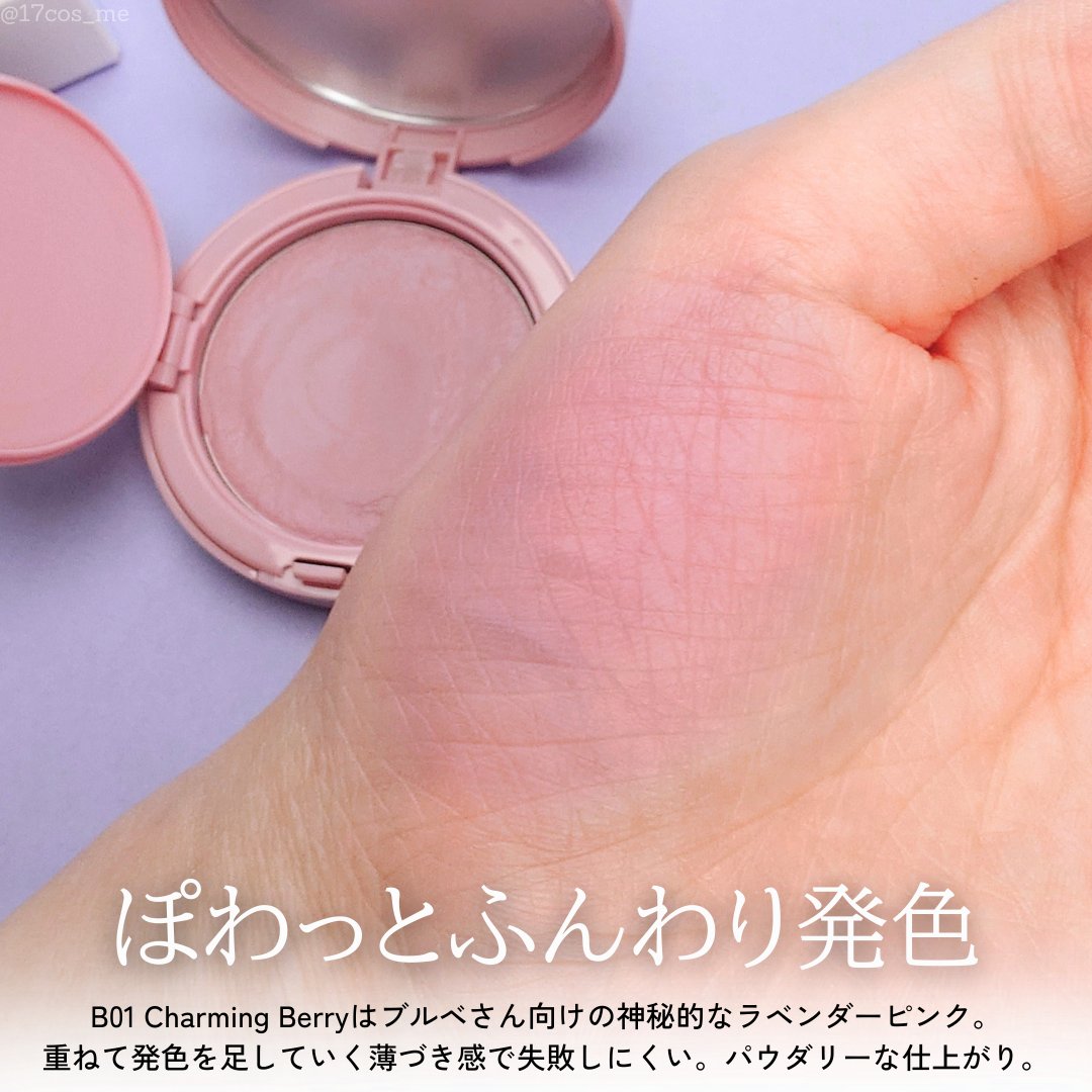 ふんわり発色が可愛い♡クッションタイプのチーク🥰TFITのフラッフィーベルベットクッションチークB01をスウォッチ✨️TFITフラッフィーベルベットクッションチークB01CHARMINGBERRY4つの季節やPCを考えて作られたチークカラー👼...