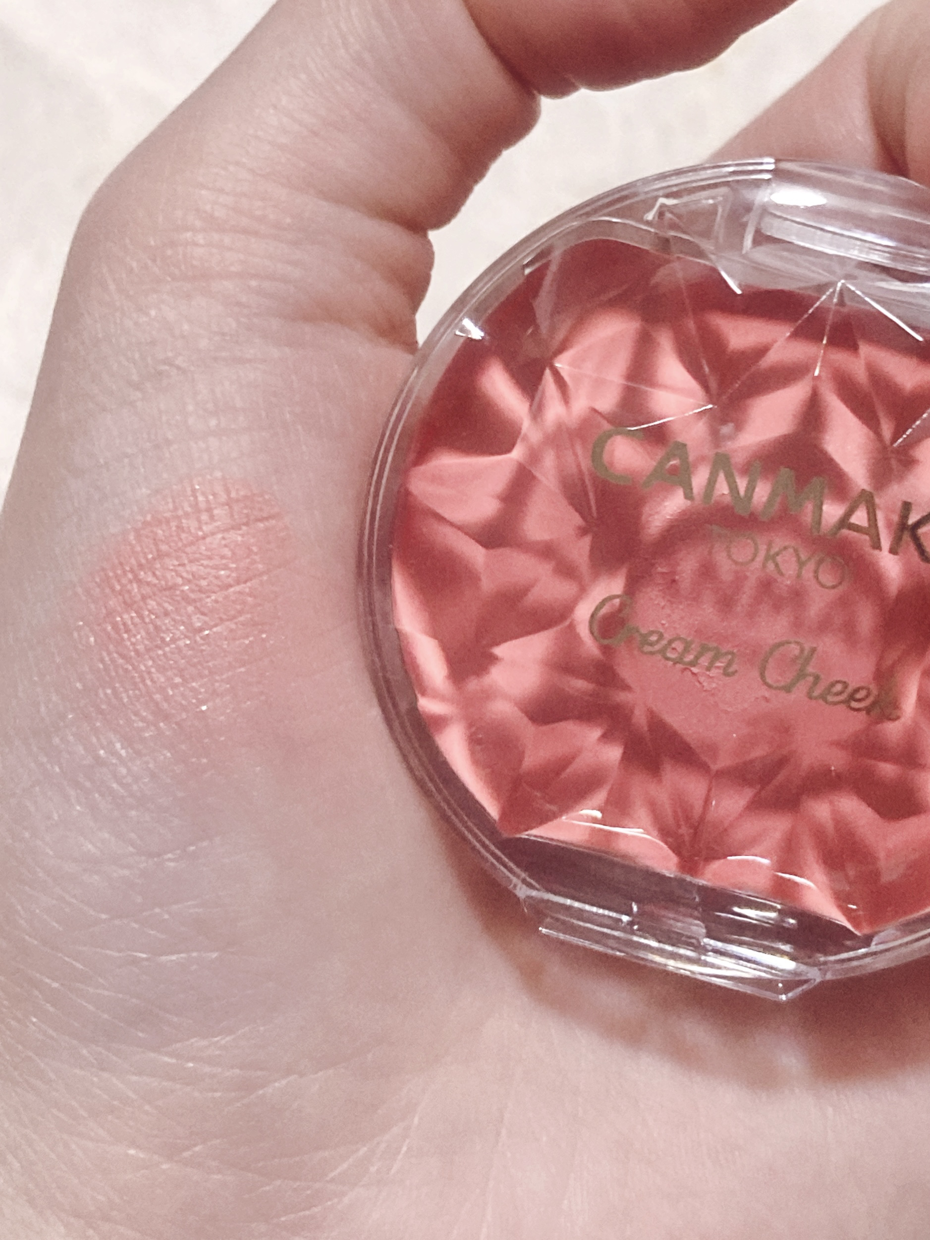 キャンメイククリームチーク05スウィートアプリコット¥638ぽわんと可愛い血色感が出せるプチプラチーク🐈指で広げるとパウダーっぽくなるのも気に入っています。#プチプラ#クリームチーク#CANMAKE#スウォッチ#チーク#イエベ春...