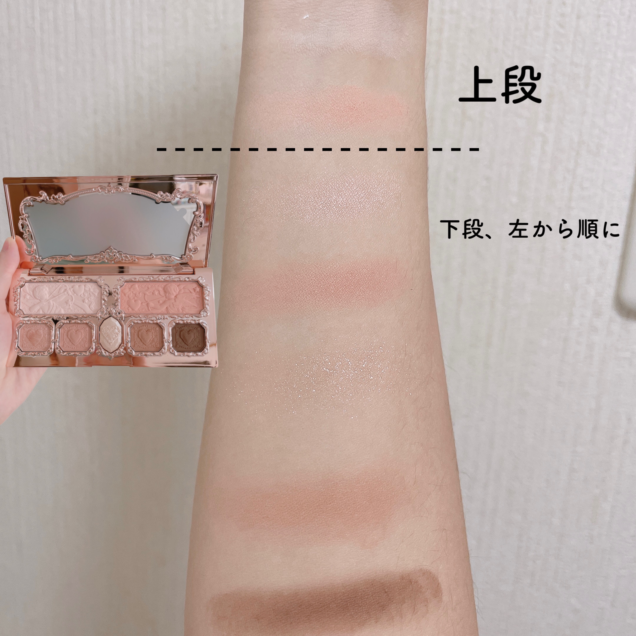 - 「ヨーロッパ式の天井画」のイメージ、対称美を極めた壮麗なデザインが特徴の礼拝堂建築が彫刻されています。 彫刻された天使たちが戯れる姿を細部にまで表現し、質感の高いゴールドのフレームといちご やリボンが柔らかな雲層の中に立体的に配置され、見る者に空間的な奥行きと「ヨーロッパ式の天井画」のイメージ、対称美を極めた壮麗なデザインが特徴の礼拝堂建築が彫刻されています。 浮彫されている天使たちが戯れる姿を細部まで表現し、質感の高いゴールドのフレームといちごやリボンが柔らかな雲層の中に取り入れ、見る者に奥行きのあるファンタジーな世界へ引き寄せ、古典的なヨーロッパ美術や空間美学を感じさせられるデザインとなります。 魅力的なストロベリーピンクを基調にした色は肌に馴染みやすく、ナチュラルでありながらも印象的な仕上がり ・柔らかく輝くパールやラメと、しっとりとしたマットの質感が絶妙に融合。これ一つでアイメイクからチーク、ハイライトまでお楽しみいただけます。 ・使いやすいサイズ感で、やわらかなテクスチャーは指先でもブラシでも簡単に塗布でき、思いのままの仕上がりを叶えます。 ・持ち運びに便利なデザインで、お出かけや旅行の際でも手軽に美しさをキープ。いつでもどこでも、あなたの魅力を引き出します。 チークカラー:透明感を引き立て、健康的で自然な血色感を演出します。 マットハイライトカラー:顔全体の質感を均一に整え、自然な立体感をプラスします。 マットアイシャドウカラー:柔らかくロマンチックな印象を与え、多彩で繊細な色彩を描き出します。 パールアイシャドウカラー:ポイントメイクに輝きを添え、繊細で生き生きとした印象を演出します。