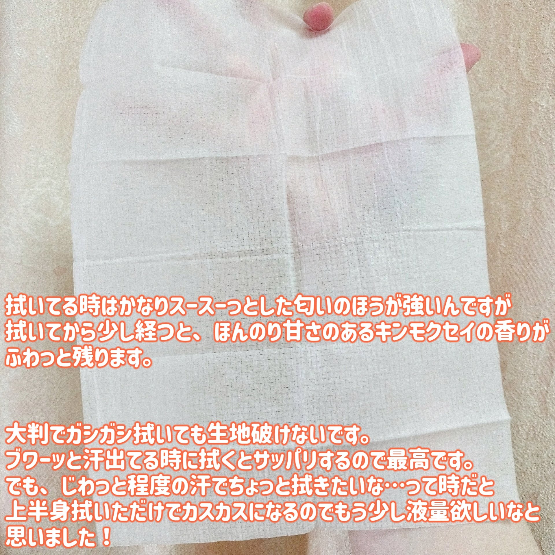 | ボディシートランキング第9位 | かなりヒンヤリとしています😊甘い香りがついているわけではないので、男女問わず使えるのはいいなぁと思います✨ | 詳細を見る | |