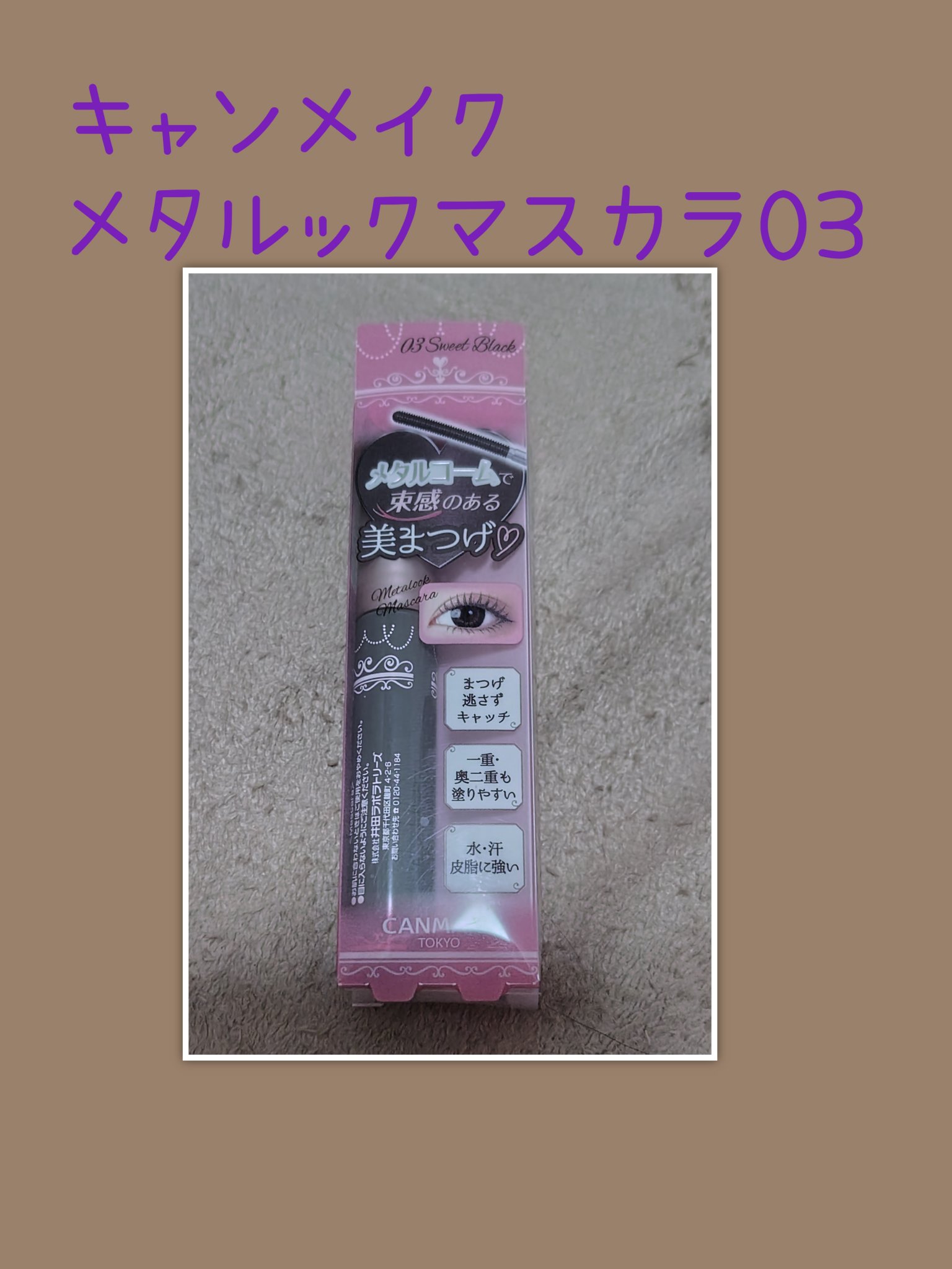 愛用中の優秀マスカラです。キャンメイク、メタルックマスカラ。お色は03スウィートブラックです。 コスパがいい。主張しすぎないスウィートブラックの色がかわいい。クレンジングで割ときれいに落とせる。 今まで使ってきたマスカラの中でも、かなりお気に入りです。これからも愛用していきます。