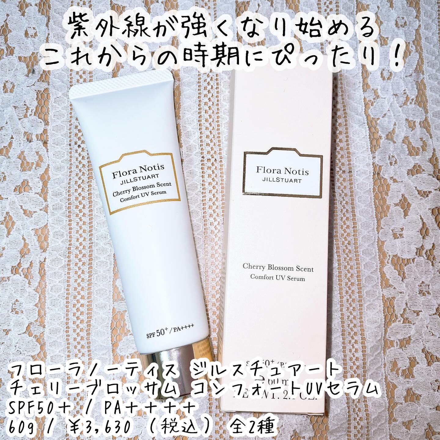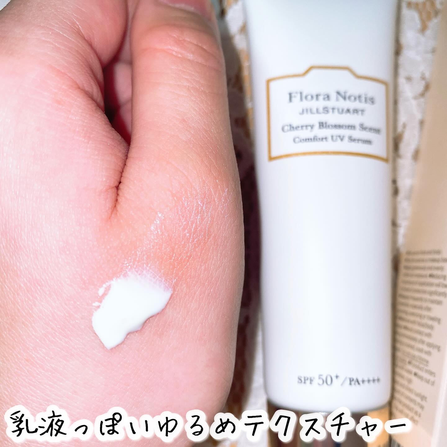 🏷️FloraNotisJILLSTUARTチェリーブロッサム コンフォートUVセラムSPF50+PA++++(顔・からだ用)高い紫外線カット効果で、肌をしっかり守りながら透明感あふれる美肌に導く、美容液仕立ての日やけ止め🌸みずみずしいテ...