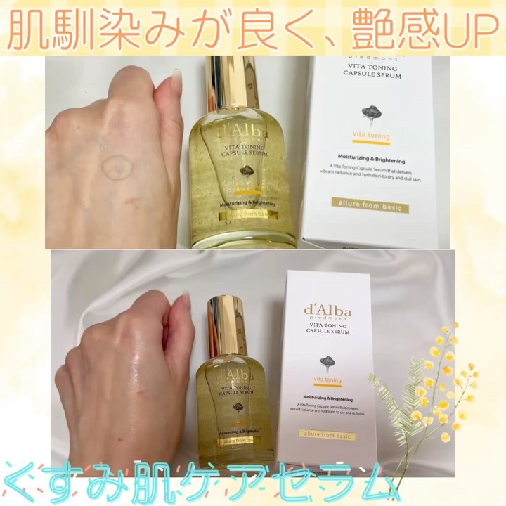 - 肌を明るくする4万*Vitaカプセルで透き通った華やかなビタトーニング べたつかずなめらかなビタミンカプセルセラム *本品容量100ml基準(製造バラつきあり、内部算出基準) 水分で満たされたふっくらとした水分ベースとビタミンカプセルが素早くブレンドされ水分膜を形成し、べたつかず、なめらかな仕上がり 【ご使用方法】 洗顔後、適量を手にとり、肌のキメに沿ってやさしくのばした後、軽くたたいて吸収させます。 TIP.2~3回レイヤリングすると、保湿·栄養集中ケアに役立ちます。 【使用上の注意】 お肌に異常が生じていないかよく注意して使用してください。 化粧品がお肌に合わないとき即ち次のような場合には、使用を中止してください。そのまま使用を続けますと、症状を悪化させることがありますので、皮ふ科専門医等にご相談されることをおすすめします。 (1)使用中、赤味、はれ、かゆみ、刺激、色抜け(白斑等)や黒ずみ等の異常があらわれた場合 (2)使用したお肌に、直射日光があたって(1)のような異常があらわれた場合