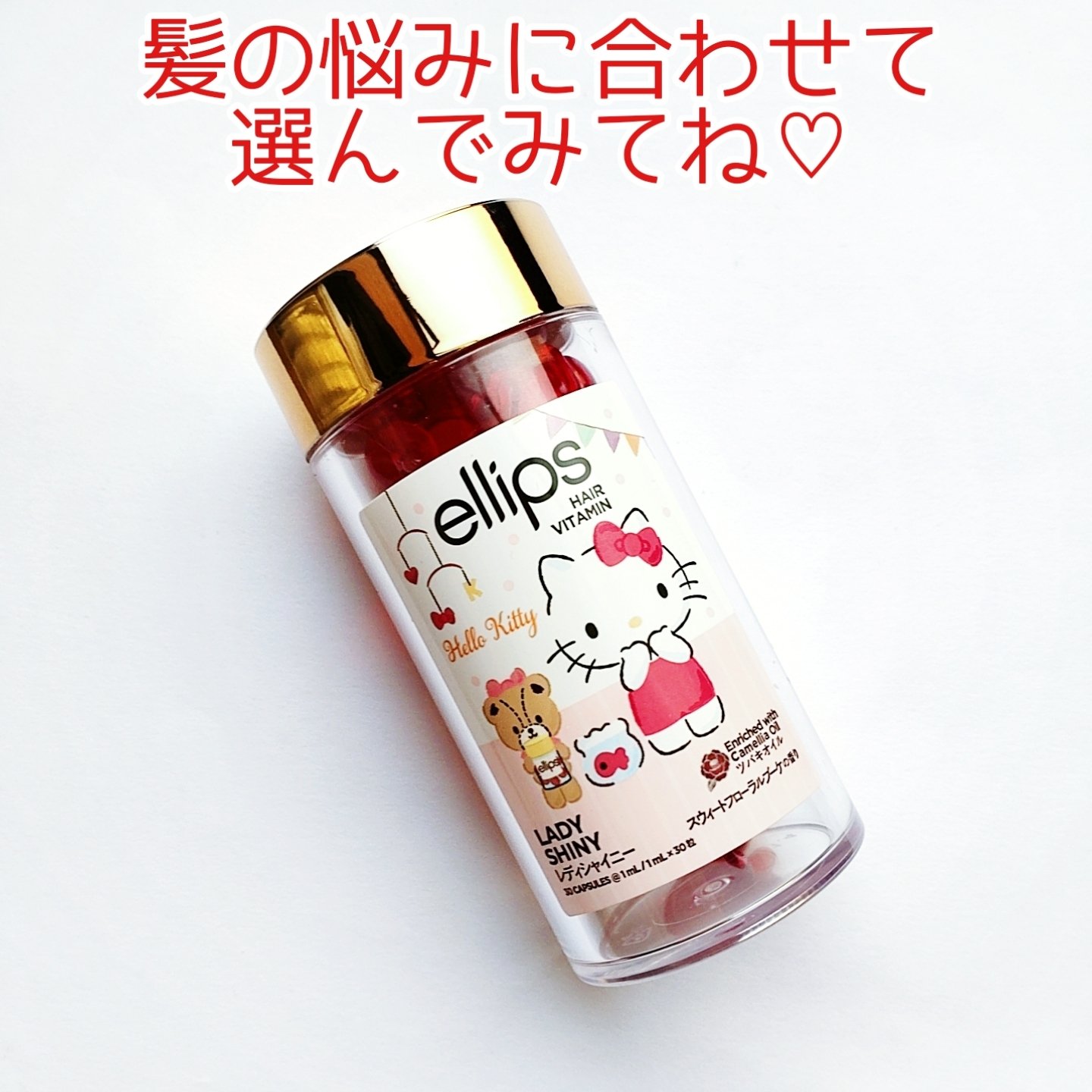 【#PR】ellipsサンリオ限定デザインエリップスヘアオイルボトルタイプ30粒1320円(税込)レディシャイニーレッド(キティ)/スウィートフローラルブーケの香りellipsはカプセルタイプになっており、1粒づつ充填することで毎回新鮮なオイ...