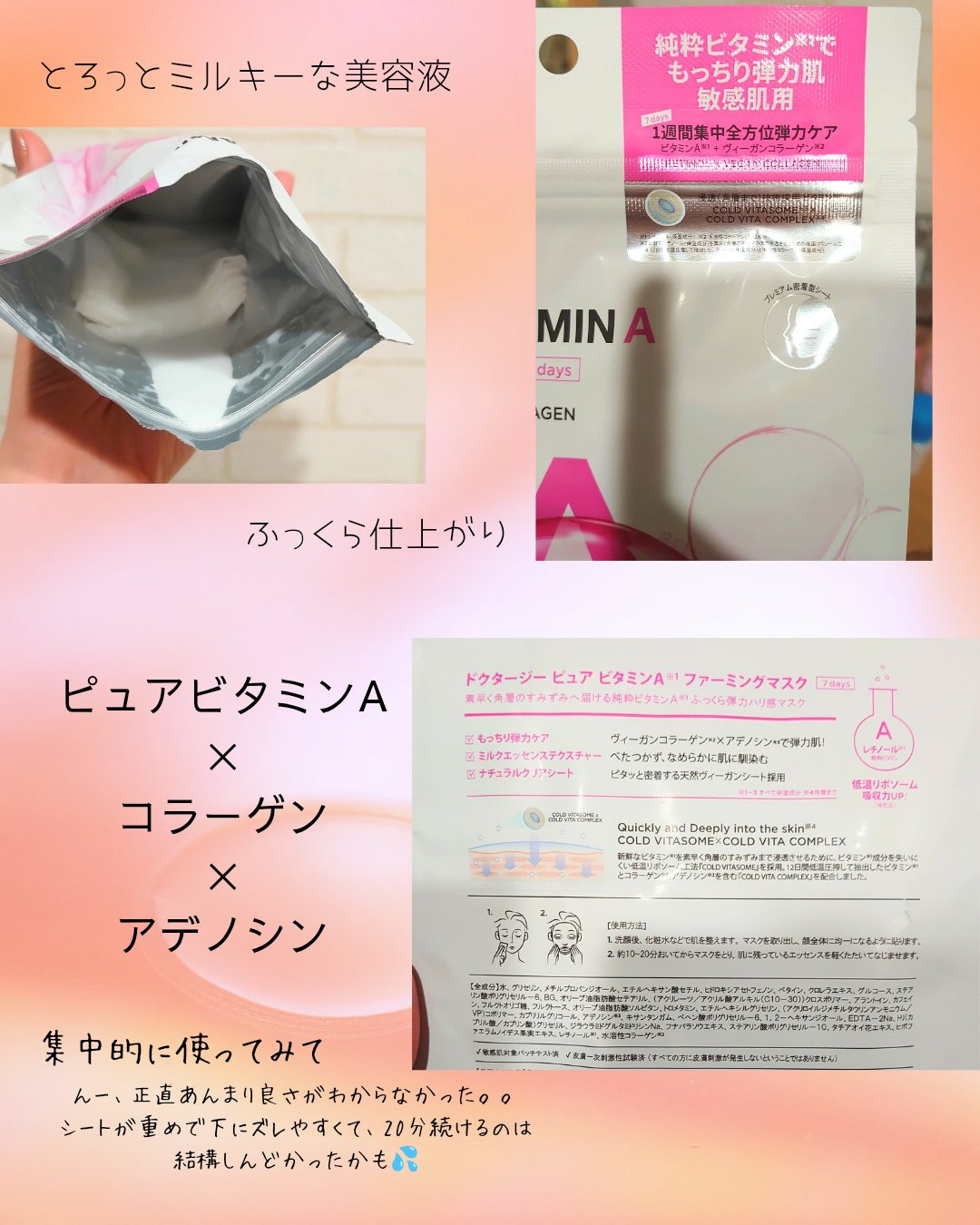 #PRDr.G様からプレゼントで頂きました🎁@dr.g_official_jpビタミンシリーズは、3種類!🩷ピュアビタミンAファーミングマスク ☑デイリーコラーゲンパック ☑もちもち弾力マスク💙ピュアビタミンB5モイスチャーライジングマスク ...
