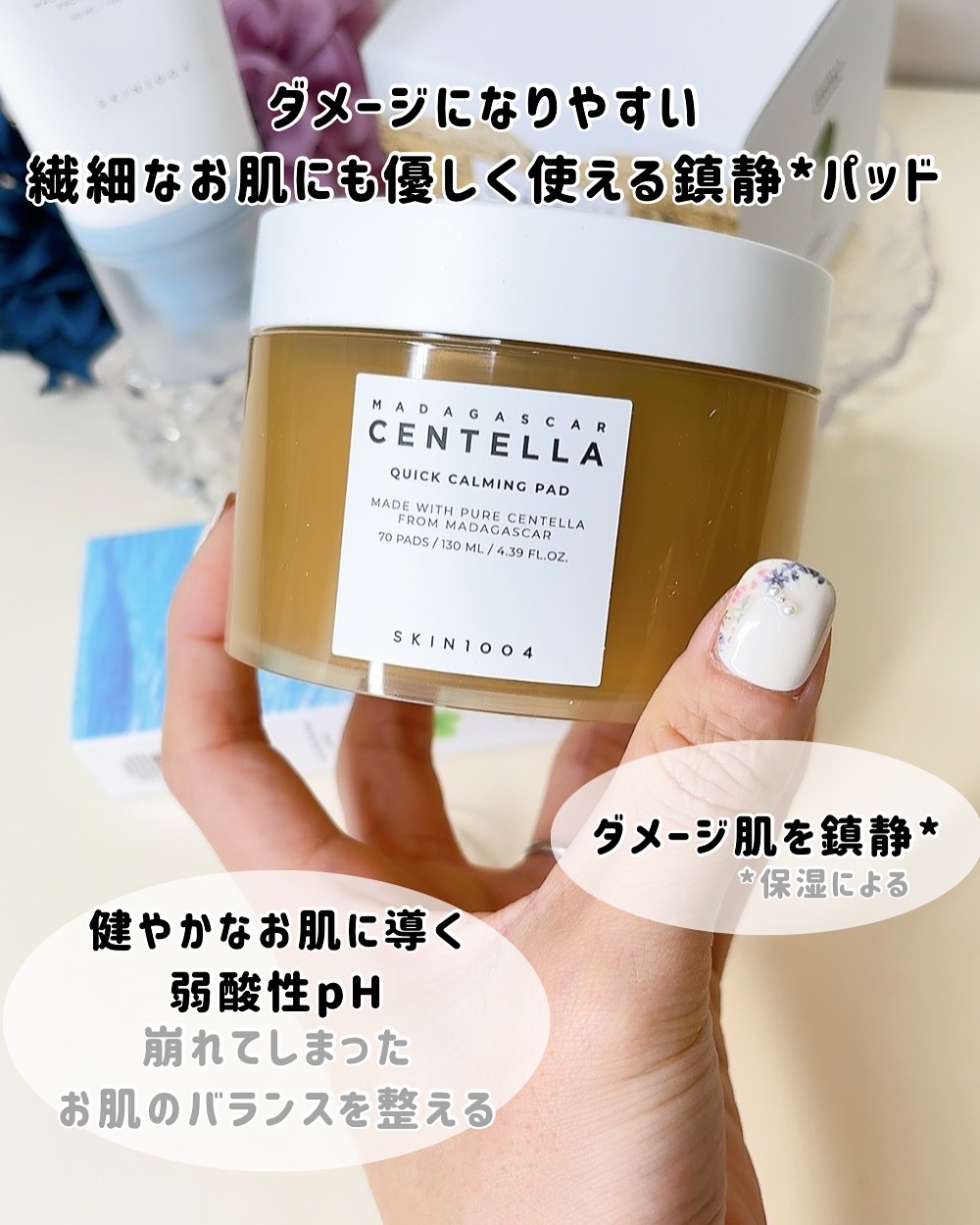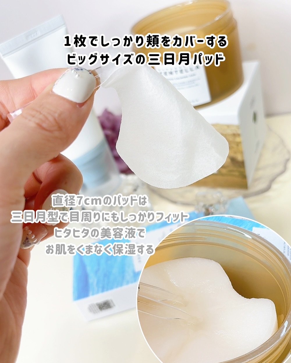 お肌をぷるさらっと守っちゃおう♡ お肌にぷるっと手軽に潤いを与えてくれるのがセンテラ クイックカーミングパッド さらっと紫外線から守ってくれるヒアルーシカ サンセラムお試しさせて頂きました♡ 大判の半月パッドでスピーディーに水分チャージ🫧 ひったひたの美容液を含んだなめらかなパッドがぴたっと密着するから忙しい朝にも最適! SPF50+ PA++++の強力な紫外線保護効果がありヒアルロン酸とツボクサエキス配合で乾燥した肌に水分チャージ🫧 日焼け止め特有のキシみや匂いがせず白浮きしない♪