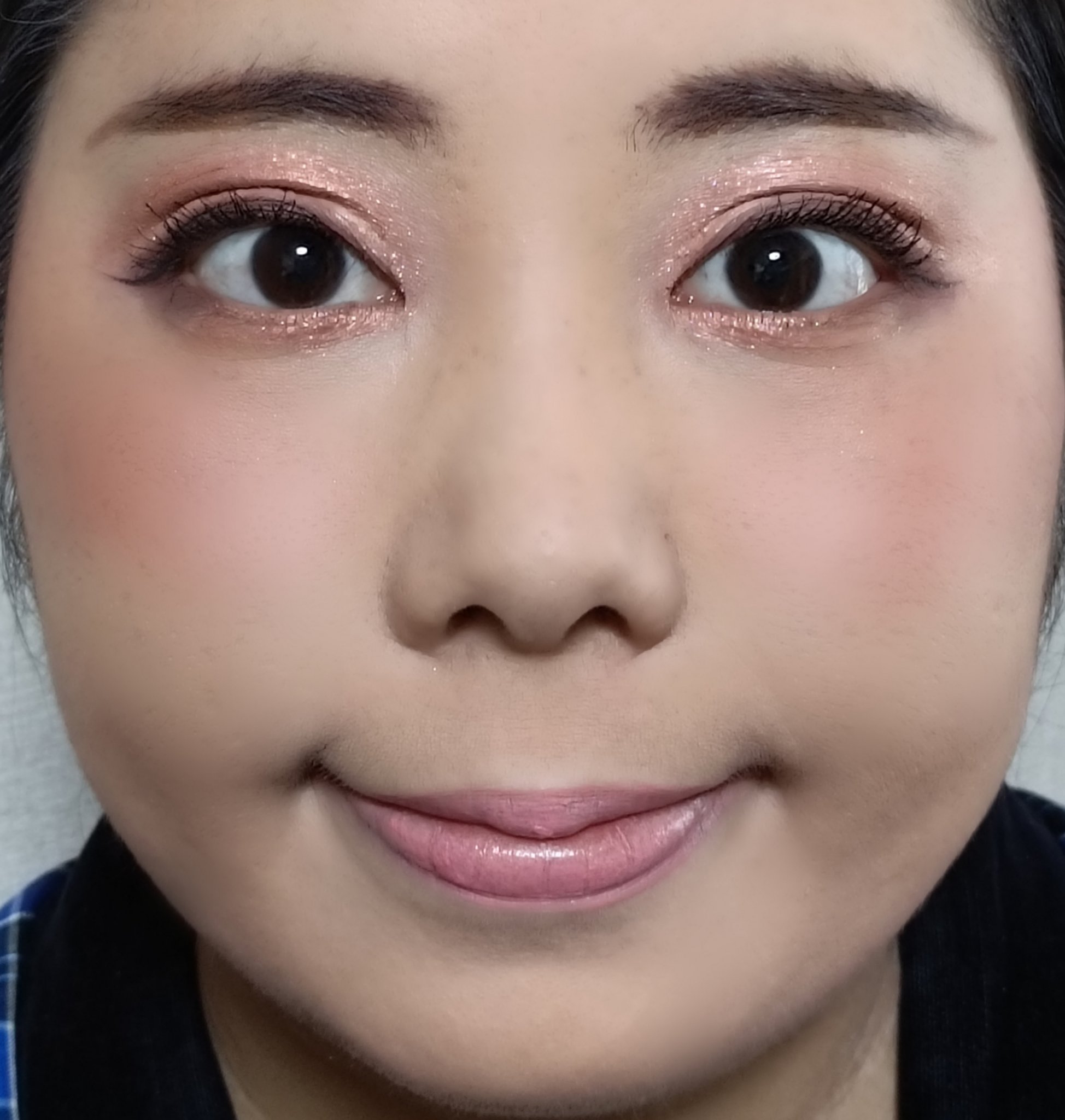 アイシャドウパレットは、UR GLAM アイシャドウパレットを、使用しました。 リップは、M・A・C リップスティック ピーチストックを、唇全体にまんべんなく塗ります。