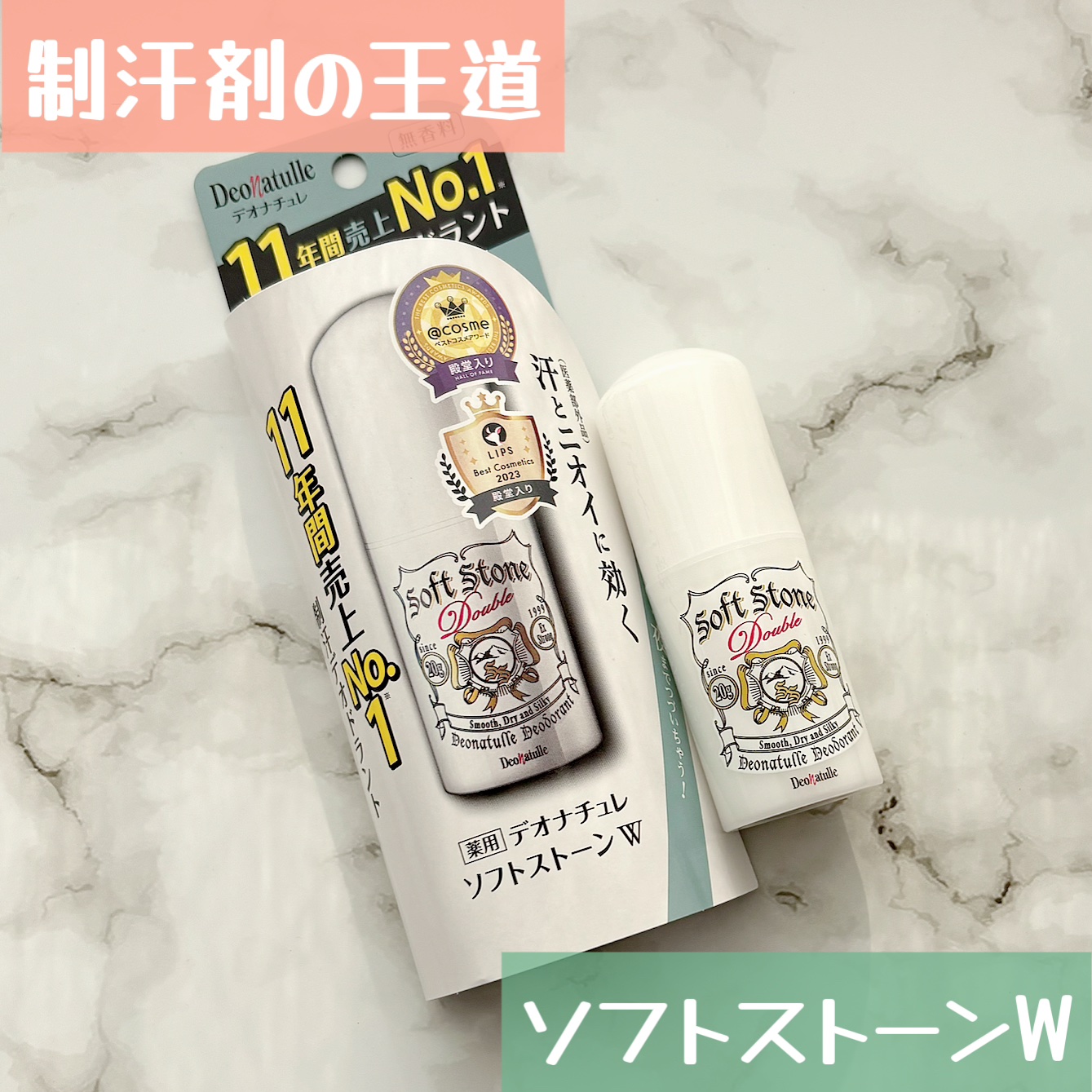 - \11年間ず~っと売上No.1*制汗デオドラント/ ワキの汗・ニオイを元から防ぐ 直ヌリスティック・無香料・アルコールフリー 天然アルム石に着目。有効成分「焼ミョウバン」を配合。 ◆◆ユーザーから選ばれる理由◆◆ ◆『天然アルム石のチカラ』に着目して、汗・ニオイを元から防ぐ! 「デオナチュレ ソフトストーンW」は、天然アルム石に着目。有効成分「焼ミョウバン」を配合し、汗・ニオイを元から防ぎます。 ◆ニオイの発生源・ワキに“直ヌリ”でしっかり密着し、朝ぬって夜まで続いちゃう! 忙しい朝でもサッとつけることができるスティックタイプで、夜まで長時間持続。 ◆すぐにサラサラ!ベタつき・白残りしにくい すぐに洋服を着ることができるので、時間のない朝にも嬉しい! ==注意== ●顔・粘膜を避け、除脱毛直後や肌に異常があるときは使用しないでください。●肌に異常が生じていないかよく注意してご使用ください。また、お肌に合わないとき、使用中に赤み、はれ、かゆみ、刺激、色抜け(白班等)や黒ずみ等の異常があらわれたときは、使用を中止し、皮フ科専門医などにご相談ください。●使用後はキャップをしっかり閉め、直射日光や高温多湿を避けて保管してください。●乳幼児の手の届かないところに置いてください。●スティックを出し過ぎて折れないようご注意ください。●衣類などにつかないようご注意ください。●本製品は残り少なくなりますと、構造上容器の底に中身が若干残ります。そのため、実際には容器に表記されております容量以上を充填しております。 販売名:DN薬用スティックFe *インテージSRI+制汗剤市場 2013年5月~2024年4月 ソフトストーンW(販売名:デオナチュレソフトストーンEX(リニューアル前処方)・DN薬用スティックFe)累計販売金額