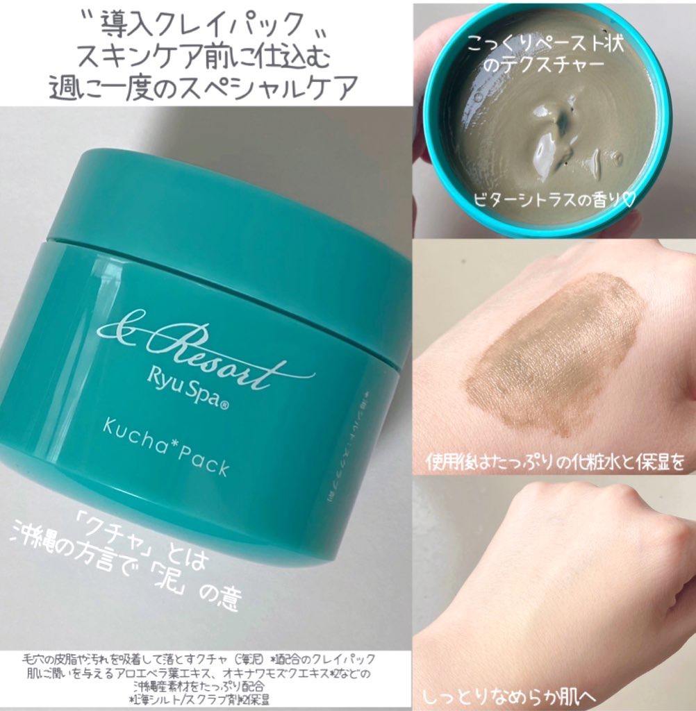 #PR𓂃✍︎RyuSpa&Resortクチャパックスキンケア前に仕込む、週に一度のスペシャルケア〝導入クレイパック〟ビターシトラスの香りとこっくりペーストなテクスチャーで、毛穴汚れや古い角質をケアしなめらかな肌に整えてくれるよ🌊🐬🏝わたしは沖...