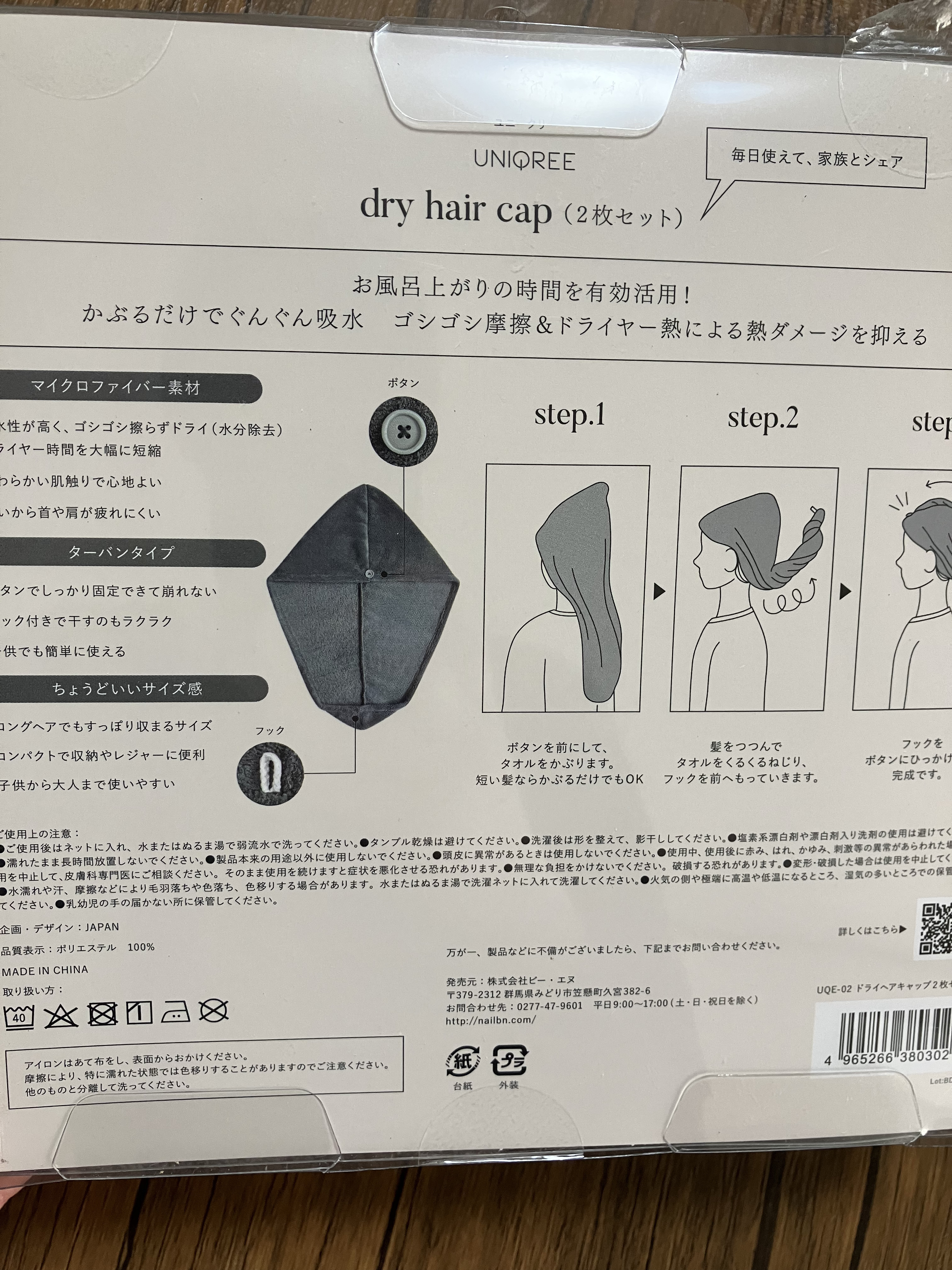 ☆UNIQREE☆商品名:ドライヘアキャップ2枚セット髪乾かすのって面倒だよね。。時短したくて、ドライヘアキャップ使ってみたよ。柔軟性·吸水性·耐久性に優れたマイクロファイバーを採用しているのがポイント。ゴシゴシしなくてもしっかり吸水してくれ...
