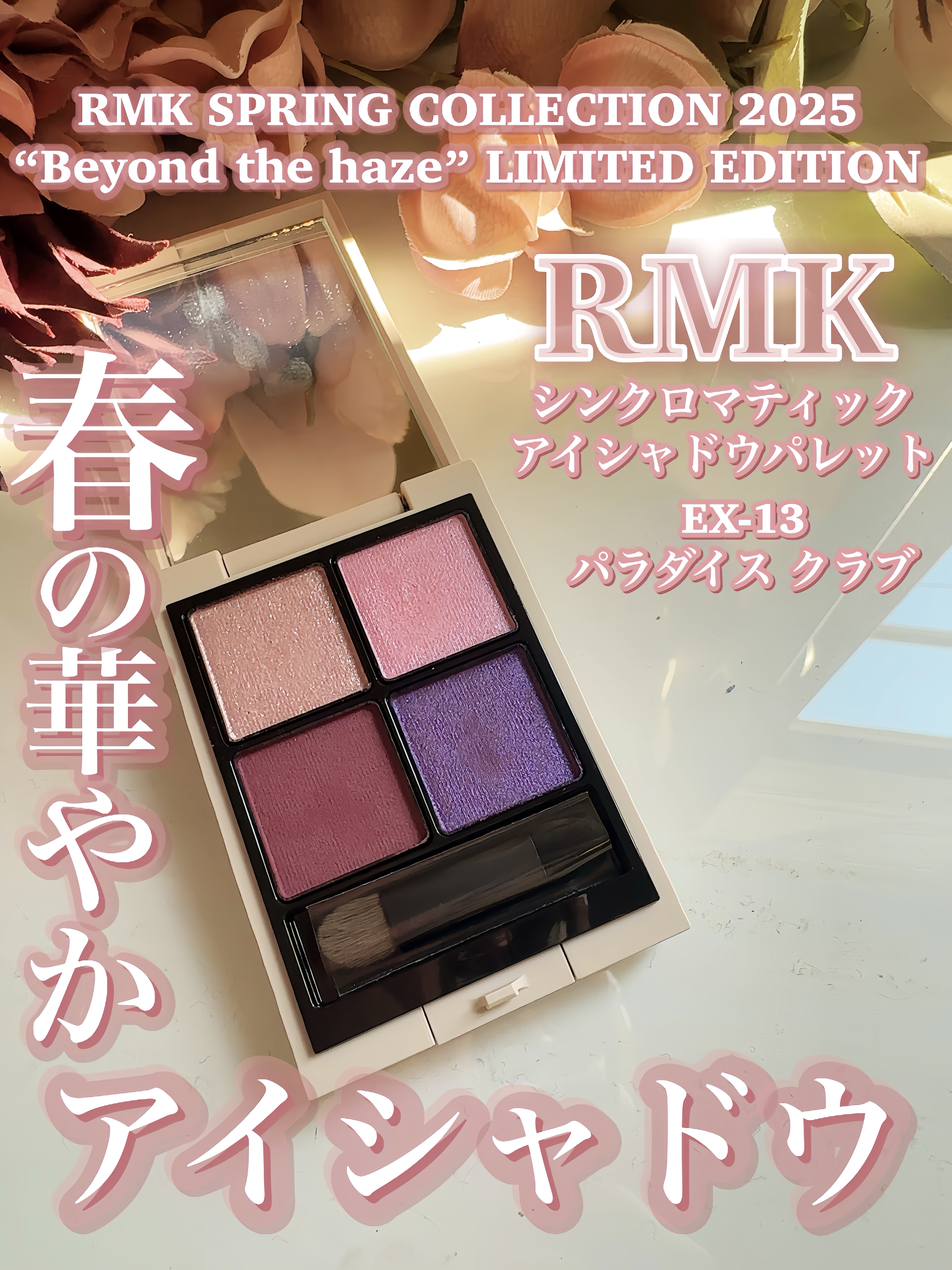 RMKシンクロマティックアイシャドウパレットEX-13 パラダイスクラブ¥6,380・EX-13パラダイスクラブ美しく咲く花々のエナジーや、人々の穏やかで心地よい心情をイメージしたパープルパレット。存在感を放つ、洗練された目もとに。SH(左上...