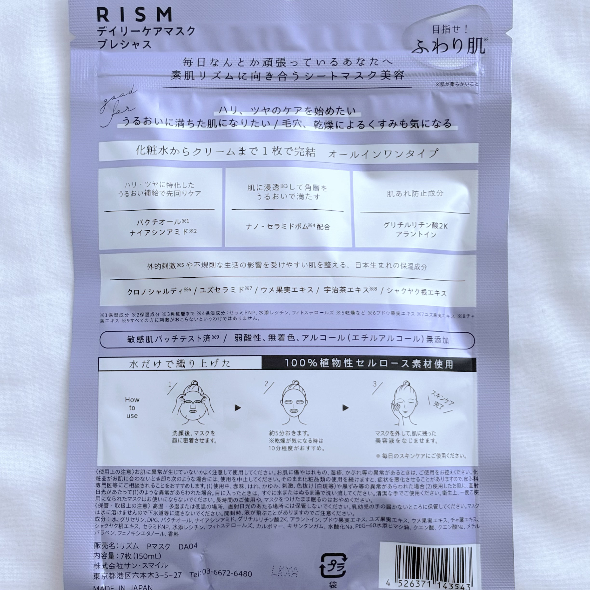 商品詳細情報RISM デイリーケアマスク プレシャス