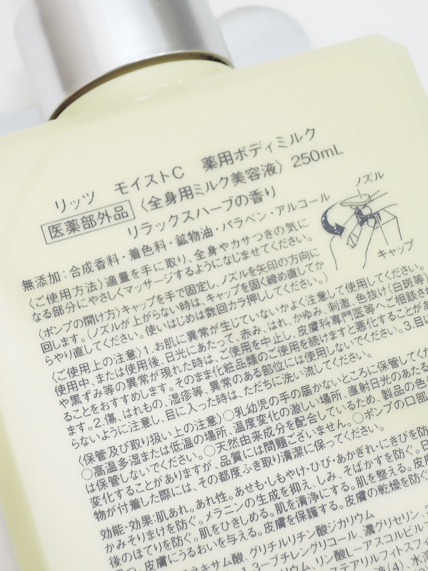 商品詳細情報リッツ モイストC 薬用ボディミルク リラックスハーブの香り