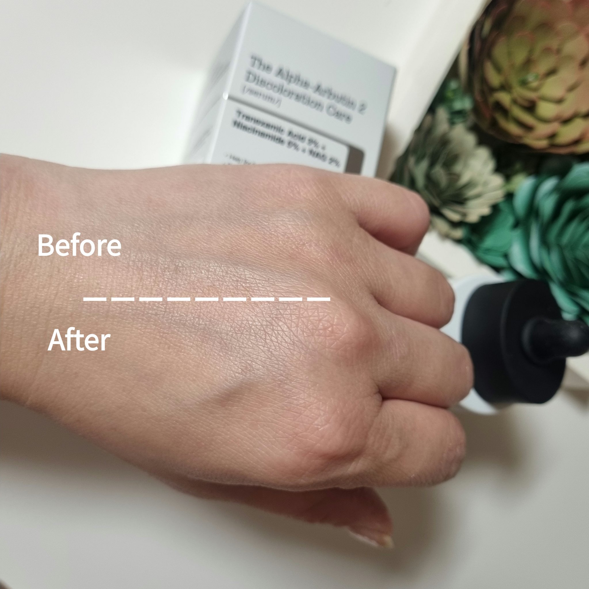 色素沈着ケアのために6種類の主要成分 アセチルグルコサミン、トラネキサム酸、ナイアシンアミド、α-アルブチン、フェルラ酸、グルタオチンを配合 たった4週間で目立って気になる色素沈着をDOWN 長い間蓄積した頑固なシミやくすみの改善が期待できる!! 肌にのせたときにはトロッとしているように感じたけど、馴染ませるとスッと肌に入っていく感じで重さもべたつきも気にならないくて使いやすい!!