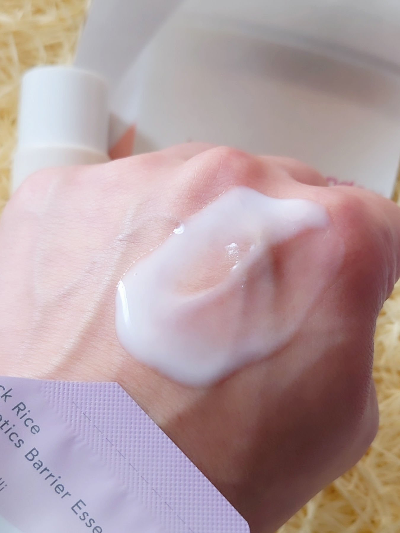 鎮静・保湿・ハリケアを1本で叶えてくれる、黒米マッコリエッセンス♪ マイクロ有効成分粒子で作られているため、効果的に肌に栄養チャージができるの💖 とろっとしたテクスチャーで、乾燥肌には嬉しいしっとりした仕上がり‼︎ これからの季節、たくさん使う♪