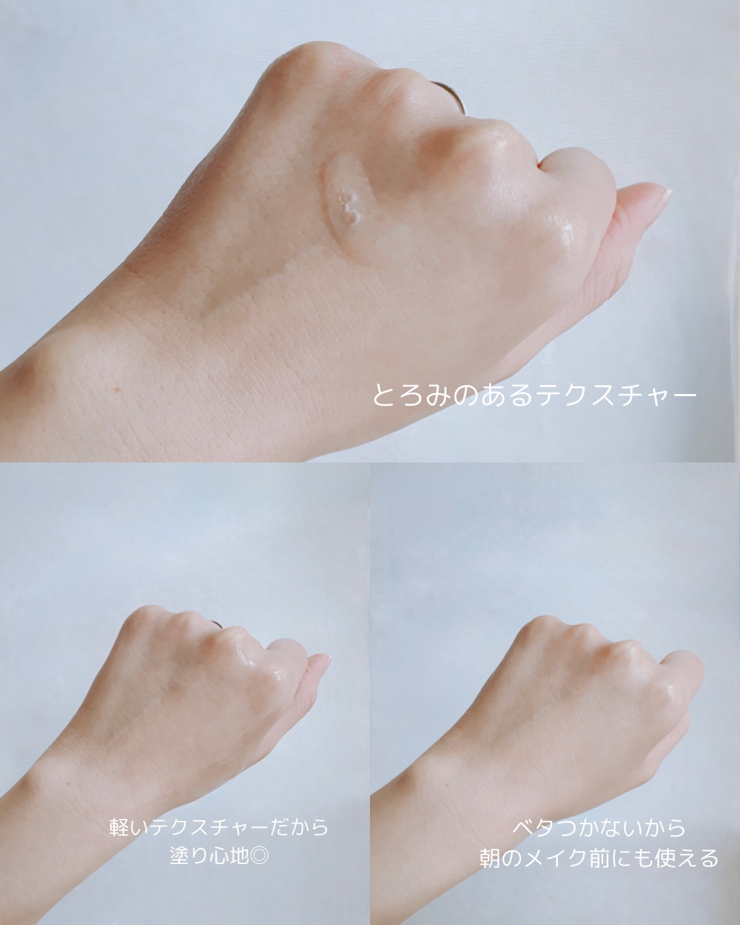 | しっとりとした使用感で馴染ませるとサラッとしてベタつかないの♡ クーリング感もあって、気持ちいいんだよね💙 | 詳細を見る | ||