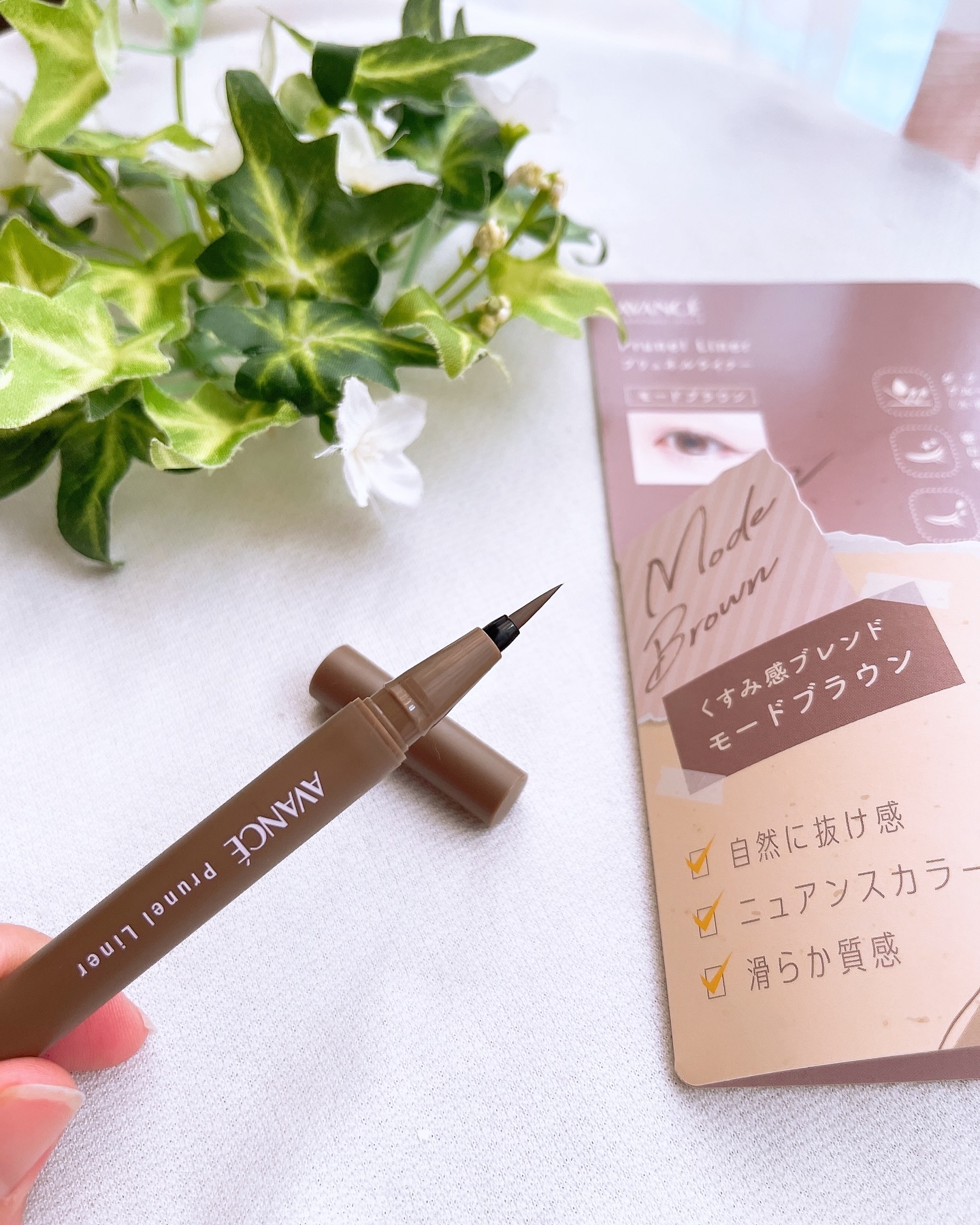 色浮きせずに、自然に瞳の印象を格上げ目もとに仕込む絶妙ニュアンスライナーアヴァンセ プリュネルライナーくすみ×ニュアンスカラーの「グレーブラック」と「モードブラウン」のリキッドアイライナー私が使ってるのはモードブラウン優しいブ...