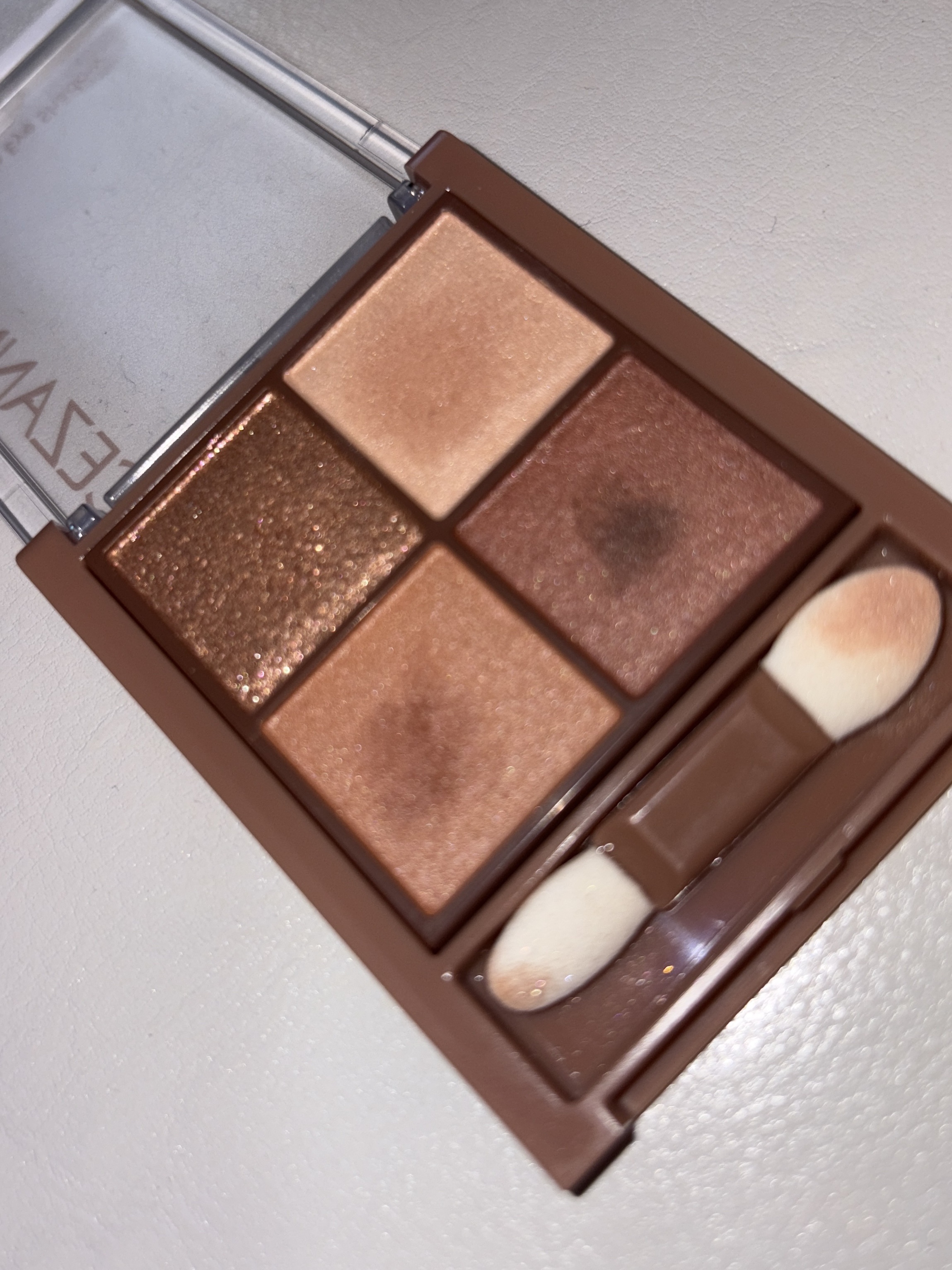 - 透け感マット×濃厚ブラウンの4色アイシャドウ。 しっかり目元を引き締めるビターなブラウンカラー。 透け感のあるブラウンを重ねて、自然な陰影のある目元へ。 ふんわり柔らかなパウダーなので、スルスル伸びてまぶたにピタッと密着。 保湿成分(スクワラン、ホホバ種子油)配合。
