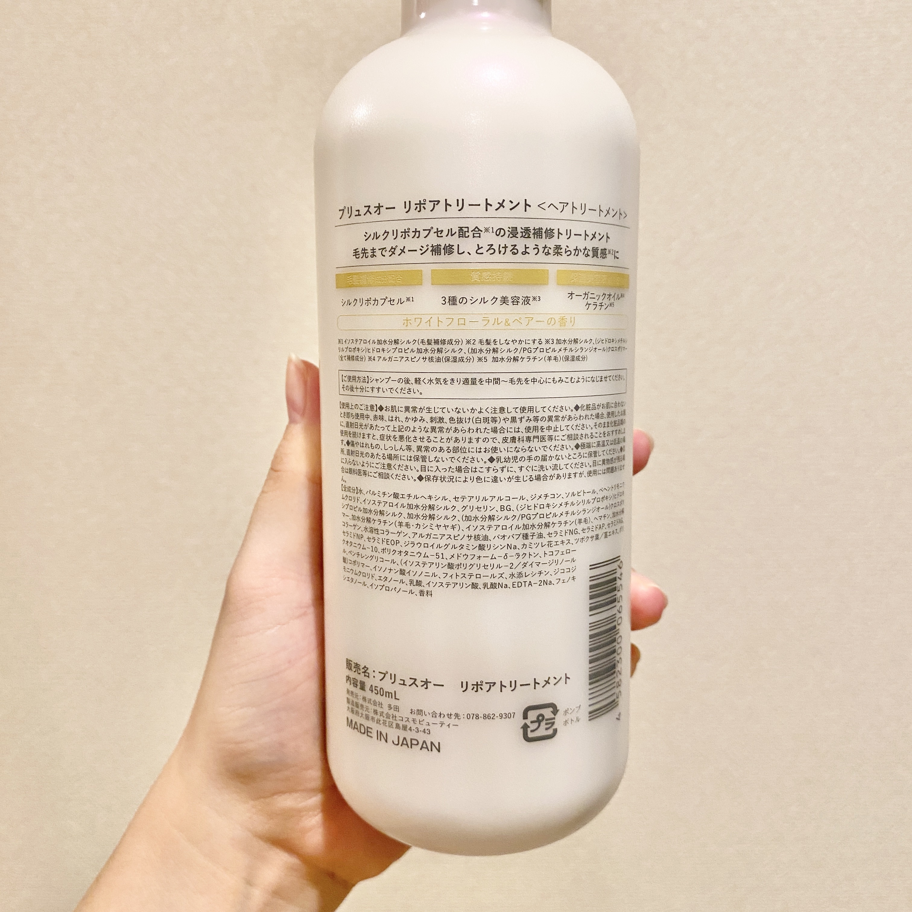 - とろけるような質感と、ダメージでパサつきがちな髪も毛先までツヤめくしっとり髪へ導く美容液シャンプー&光沢補修トリートメント。 より浸透性が高くなるカプセル化技術を採用したシルクリポカプセルを補修成分として配合。 髪の芯まで徹底補修しながらキューティクルをなめらかに整え、しっとりと潤いツヤめく髪へと導きます。 また洗いながらも髪ダメージを補修するPPT系洗浄成分を、シリーズ比で高濃度に配合。 シルク由来PPT系洗浄成分と、肌のことを考えたアミノ酸系の4種の洗浄成分とバランスよくブレンドすることでキメ細かな濃密補修泡が摩擦レスでリッチな洗い心地を実現し、髪と頭皮をいたわりながらシャンプーでも毛髪ダメージに徹底アプローチします。 カシミヤ由来のケラチンをはじめとする2種のケラチン、コラーゲン、CMC類似成分などのこだわり配合した補修成分だけでなく、美容保湿成分をたっぷり浸透させて密封補修することで、カラーや熱ダメージによるパサつき・広がり・ゴワつきなどの蓄積ダメージもしっかりケア。 ドライヤーやヘアアイロンの熱ダメージから髪を守りツヤを与える、ヒートリペア成分を配合して熱も味方に。 清楚な上品さを纏うホワイトフローラル&ペア―の香り。 2024年10月中旬 一部企業にて先行発売