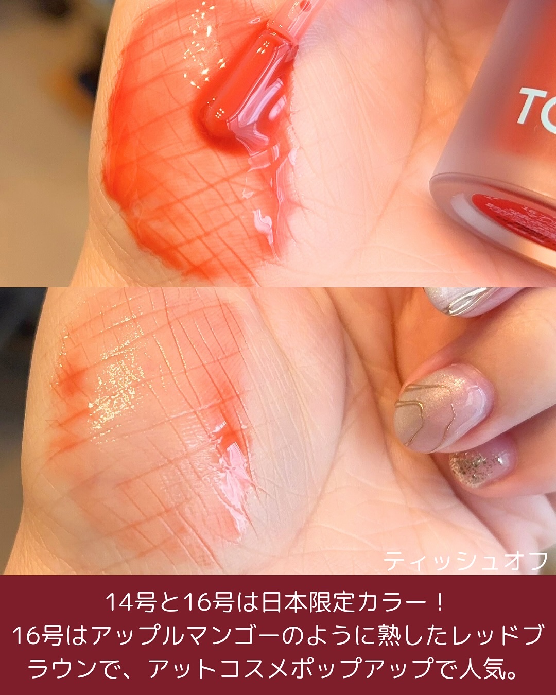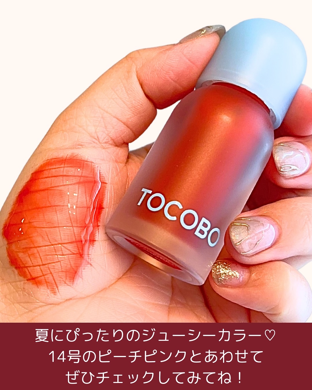 TOCOBOjuicyBerryPlumpingLipOilトコボ ジューシーベリープランピングリップオイル日本限定の新色14号ピーチネクターと16号アップルマンゴー から14号ピーチネクターを使ってみました。果実のシロップのようなうるんとし...