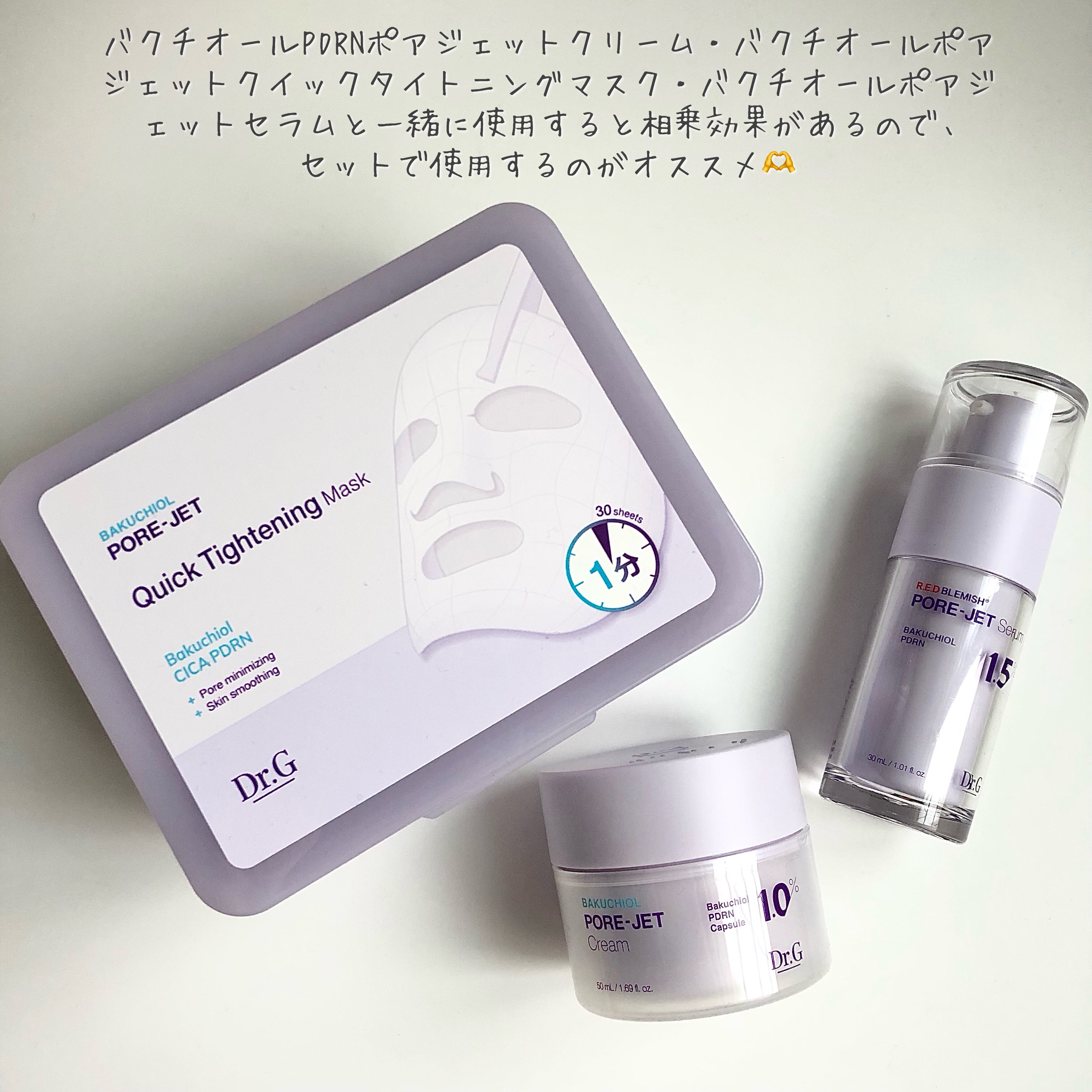 #PR#drg@dr.g_official_jpDr.Gバクチオールポアジェットクイックタイトニングマスクです💟30枚入り。たった1分で毛穴ケア*!*潤いで毛穴を目立たなくするドクタージーさん独自の成分バクチオールPDRN、シカPDRN*¹配...