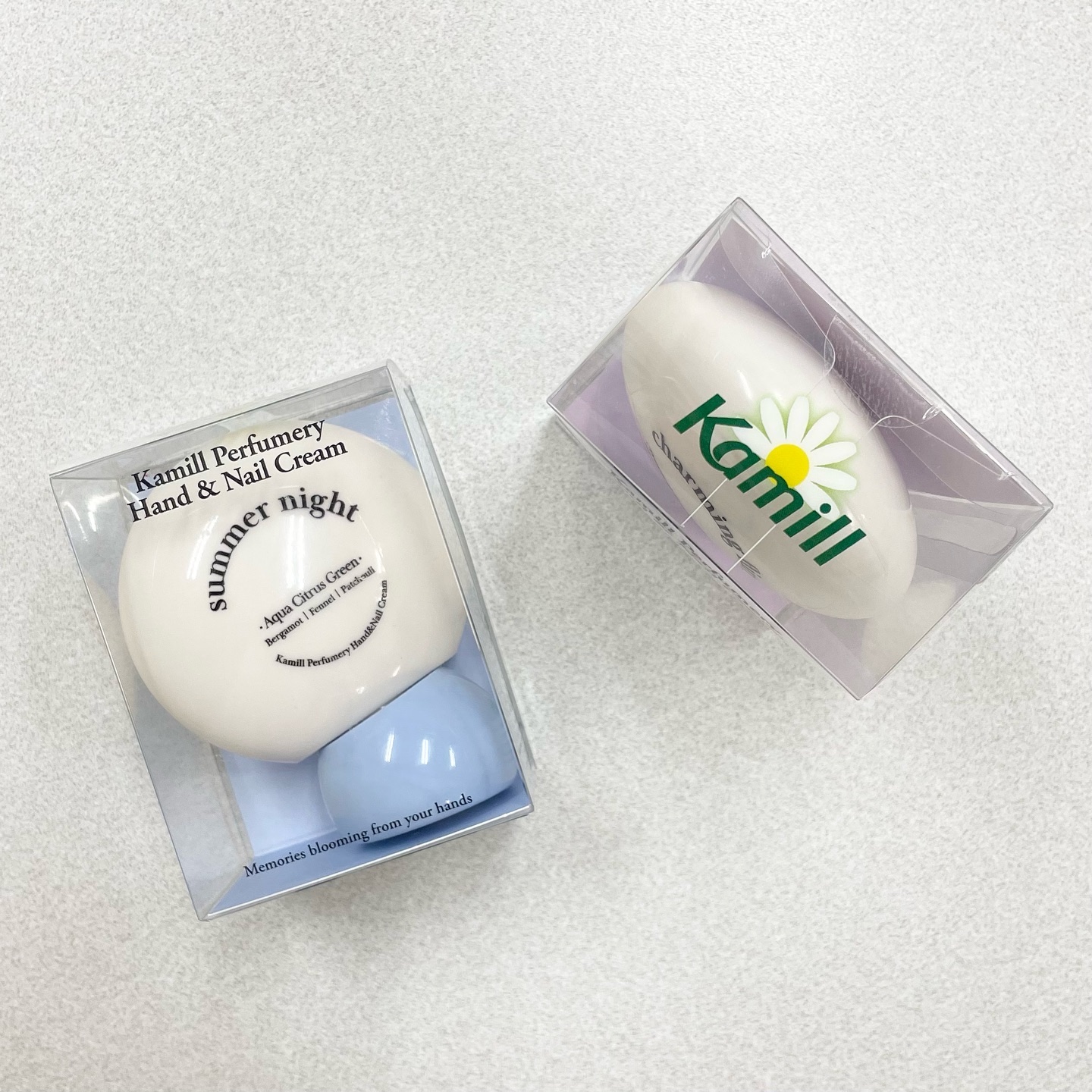Kamillパフューマリーハンド&ネイルクリームOliveyoungハンドケア5年連続1位ブランド✨6種類ある香りの中から、サマーナイトとチャーミングフラートを使ってみたよ😊🩵サマーナイト水気を含んだほろ苦い草の葉とマンダリン、清涼感のあるア...