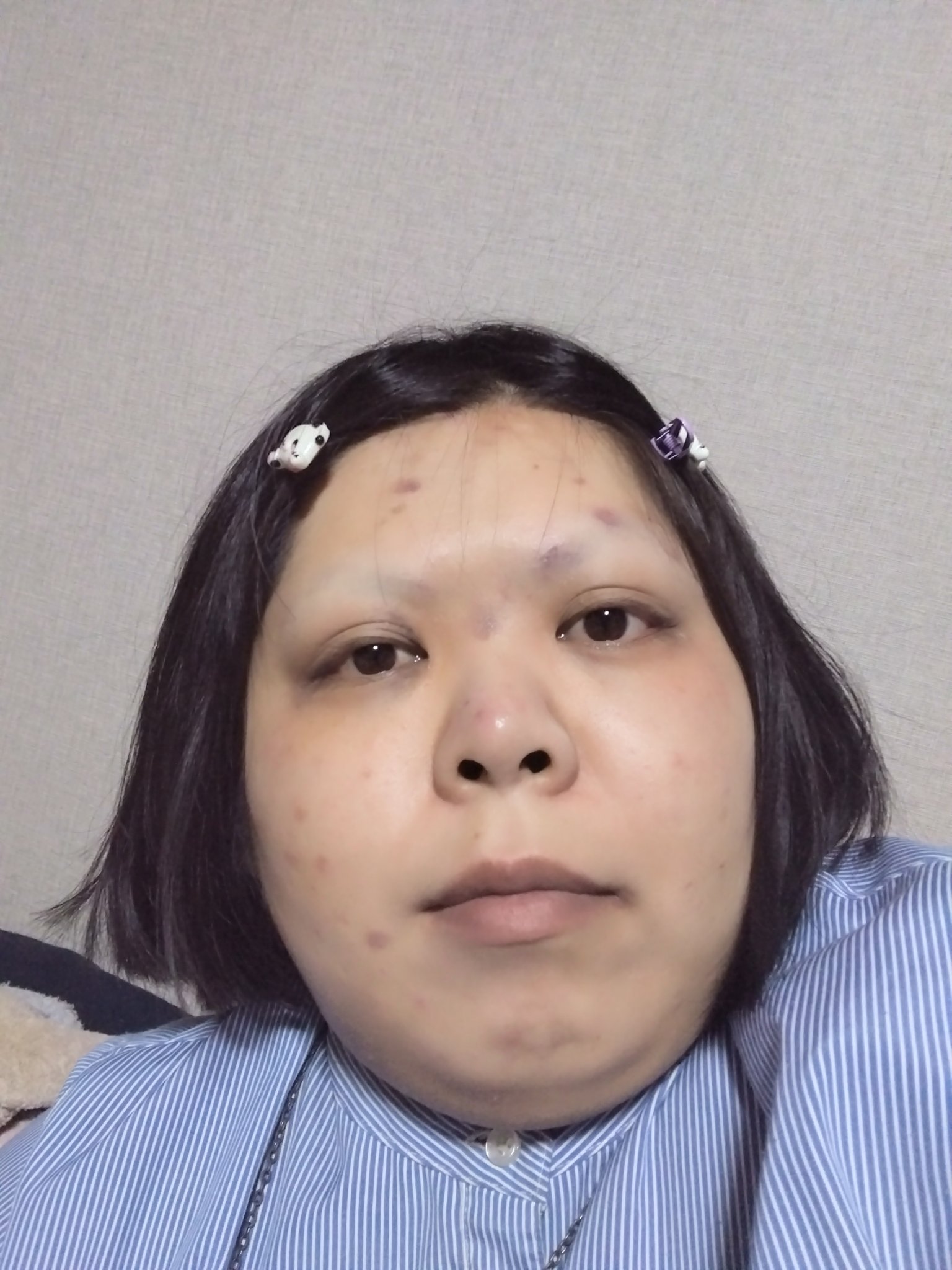 チャイを生活介護のスタッフさんに教えてもらい、メイクしました👀💄💖 アイシャドウ部分の左上を上まぶた全体に、その下のラメを涙袋に、チーク部分を二重を少し超えるくらい、真ん中下の色を二重部分に入れて、右下を締め色にします。 クリアストーンベビーピンクという色です。 綺麗なピンクです😍✨ めっちゃ粘着テープが強力で、すぐ剥がれないです。
