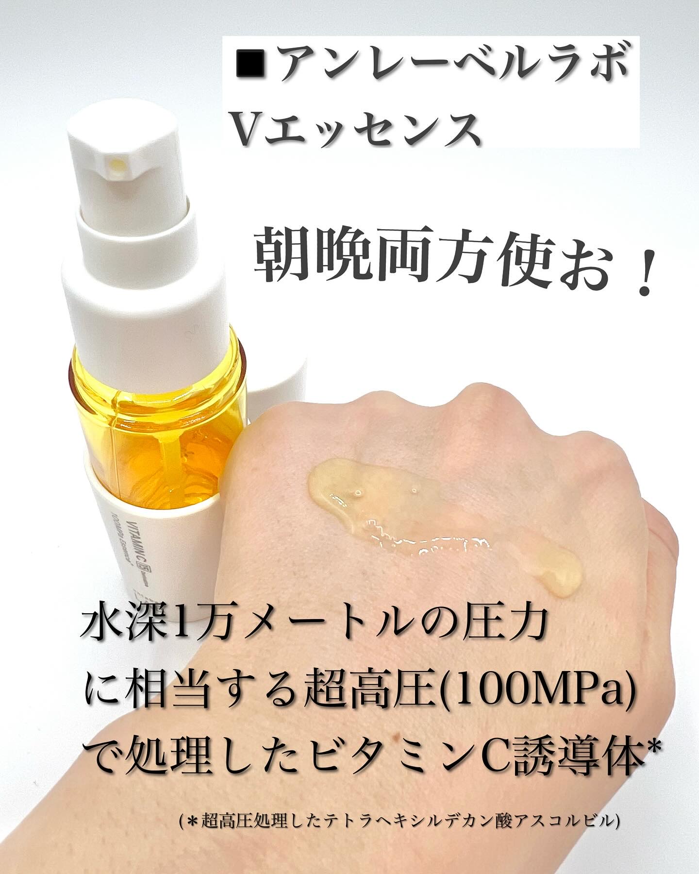 超高圧浸透型ビタミンC誘導体配合の美容液になります✨ 毛穴、くすみ、ザラつきにダイレクトにアプローチしてくれるからしっかり実感できる😌♡ 原液美容液では成しえない優れた浸透力!「超高圧浸透型成分配合美容液」を開発✨